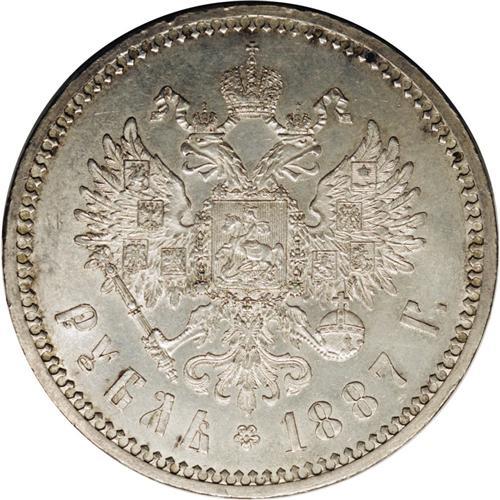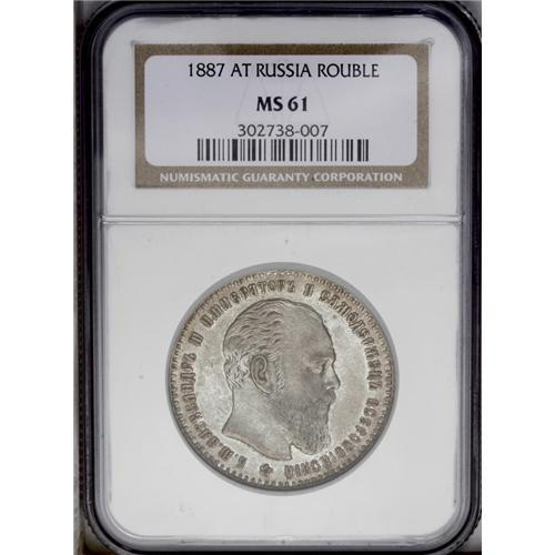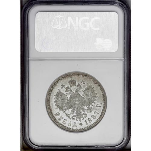<B>Alexander III. Rouble 1887 -,</B></I> Bit-61, Uzd-2012, Julian-1186, MS61 NGC. Lustrous with light golden toning and minor abrasions.<BR><I>From the St. Petersburg Collection.</B></I>