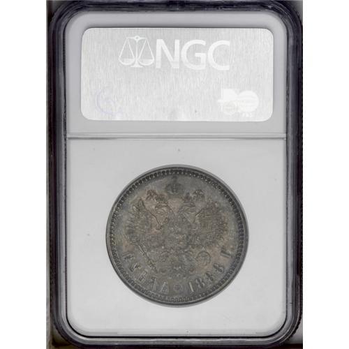 <B>Alexander III. Rouble 1888 -,</B></I> Bit-71, Uzd-2019, Julian-1188, AU55 NGC. Medium purple toning with a few light contact marks.<BR><I>From the St. Petersburg Collection.</B></I>