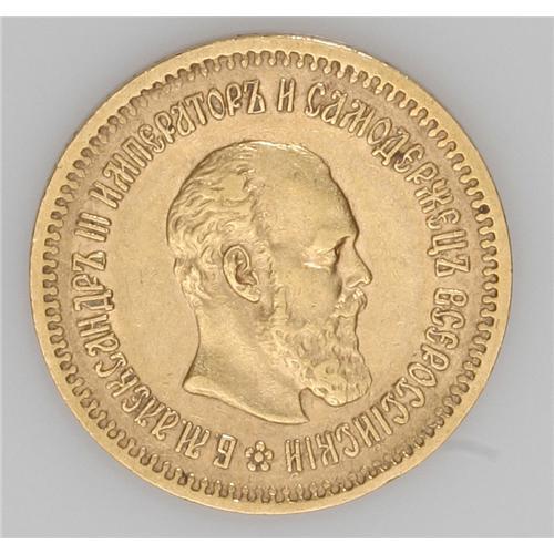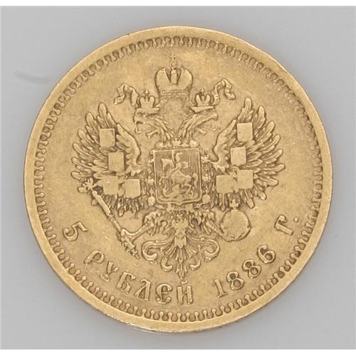 <B>Alexander III gold 5 Roubles 1886-A?,</B></I> Bit-24, XF.