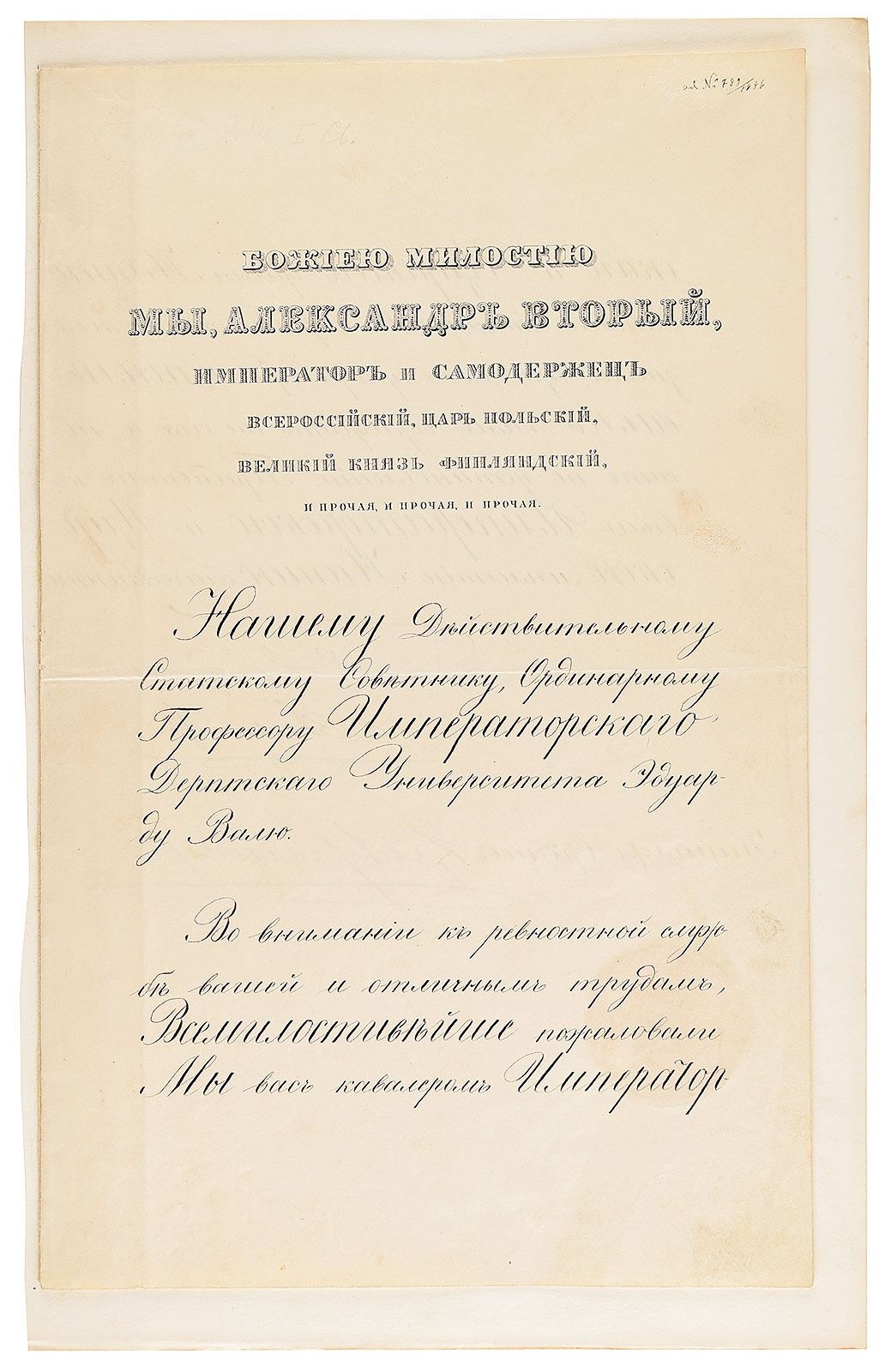 Untranslated manuscript DS in Russian, signed “Aleksandr,” one page both sides, 8.75 x 13.75, 1886. Signed boldly at the conclusion by Alexander. The document is affixed to a slightly larger mount. In fine condition, with a vertical fold near the left edge.