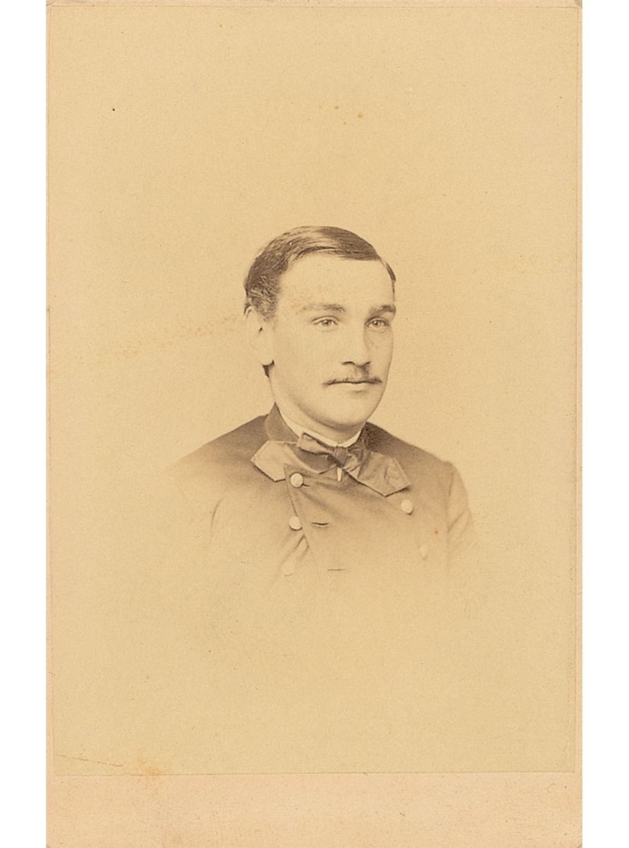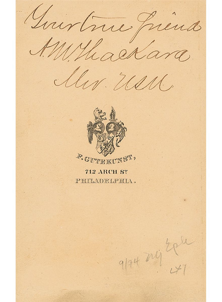 Navy midshipman during the Civil War (1848–1937) who went on to marry William T. Sherman’s daughter and held several presidential appointed ambassador posts. Original 2.25 x 4 carte-de-visite photo by Gutekunst of Philadelphia, signed on the reverse in black ink, “Your true friend, A. M. Thackara, Mid. USN.” In fine condition, with a couple light creases and pencil notations to bottom of reverse.