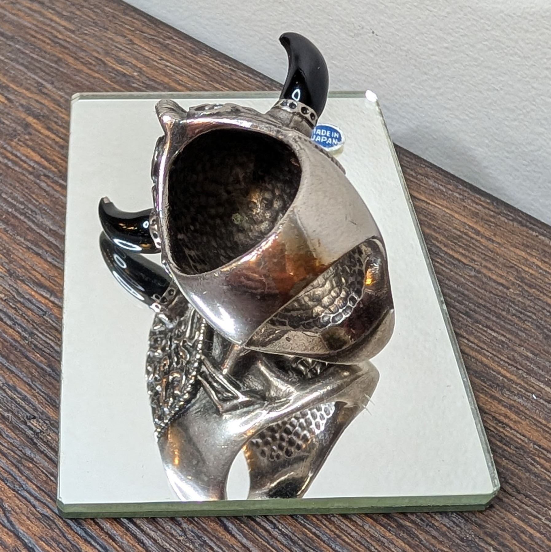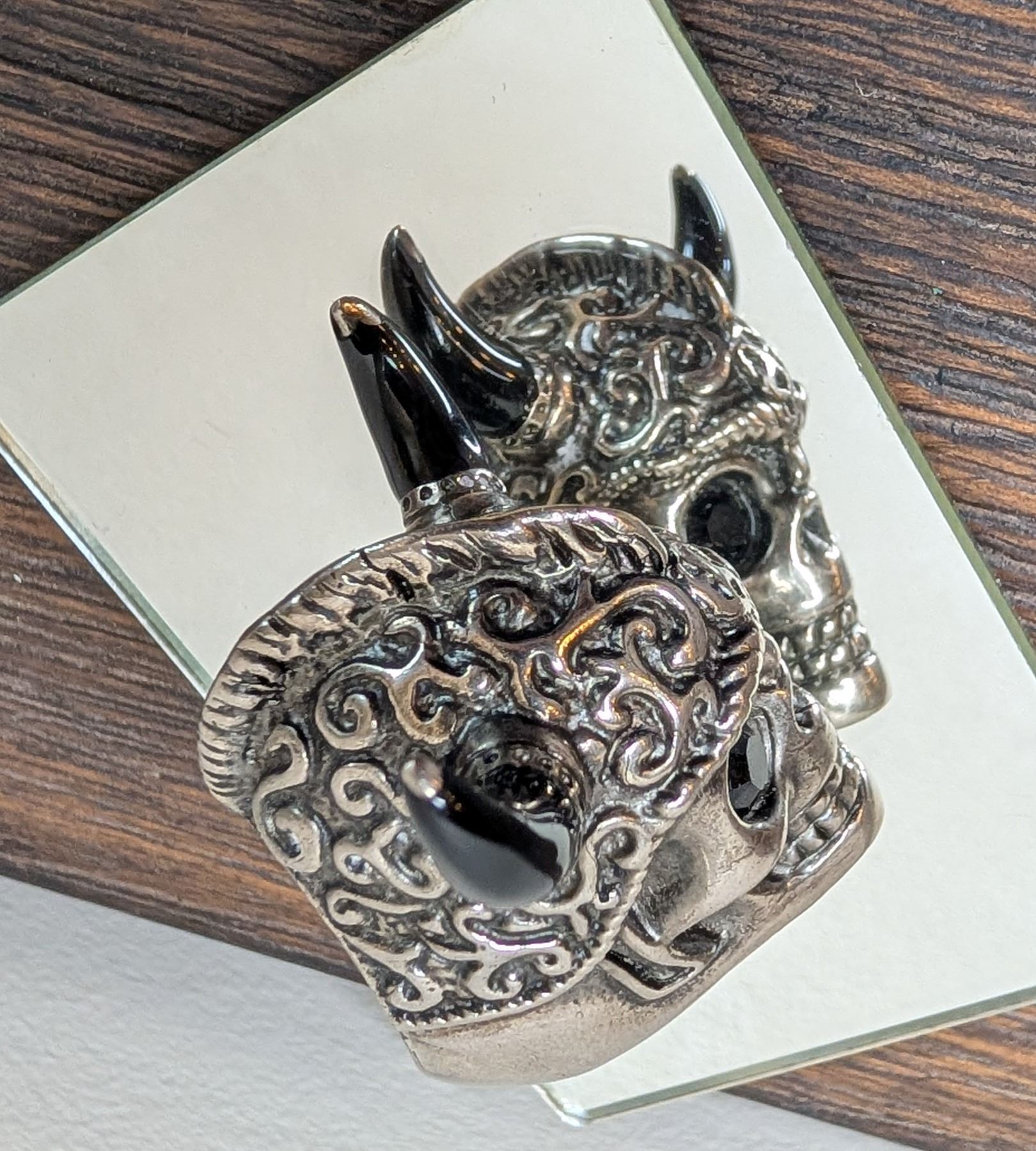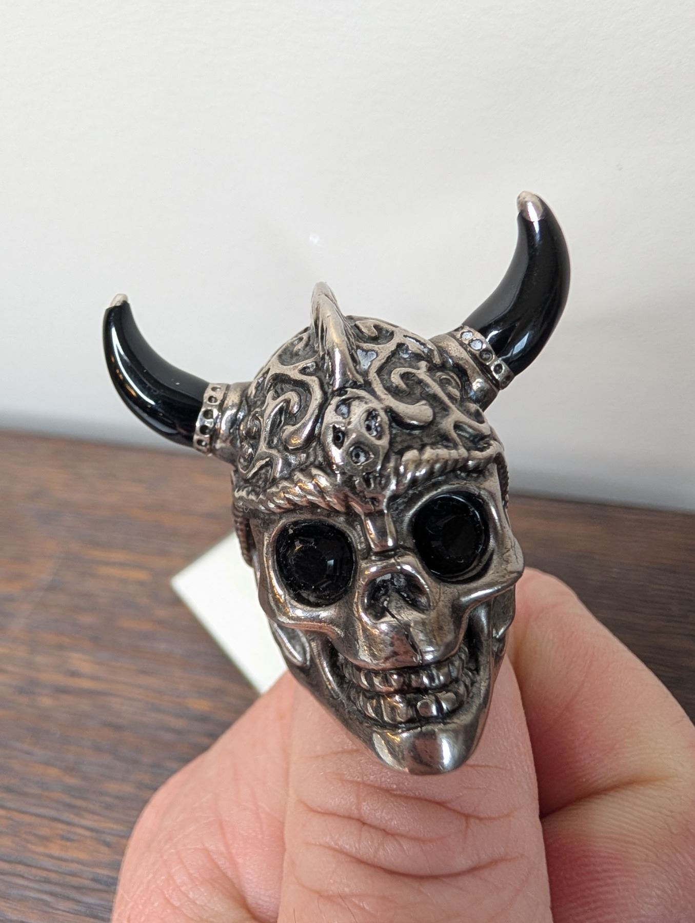 Alexander McQueen Viking Skull Ring - silver tone metal, black enamel and black crystal eyes