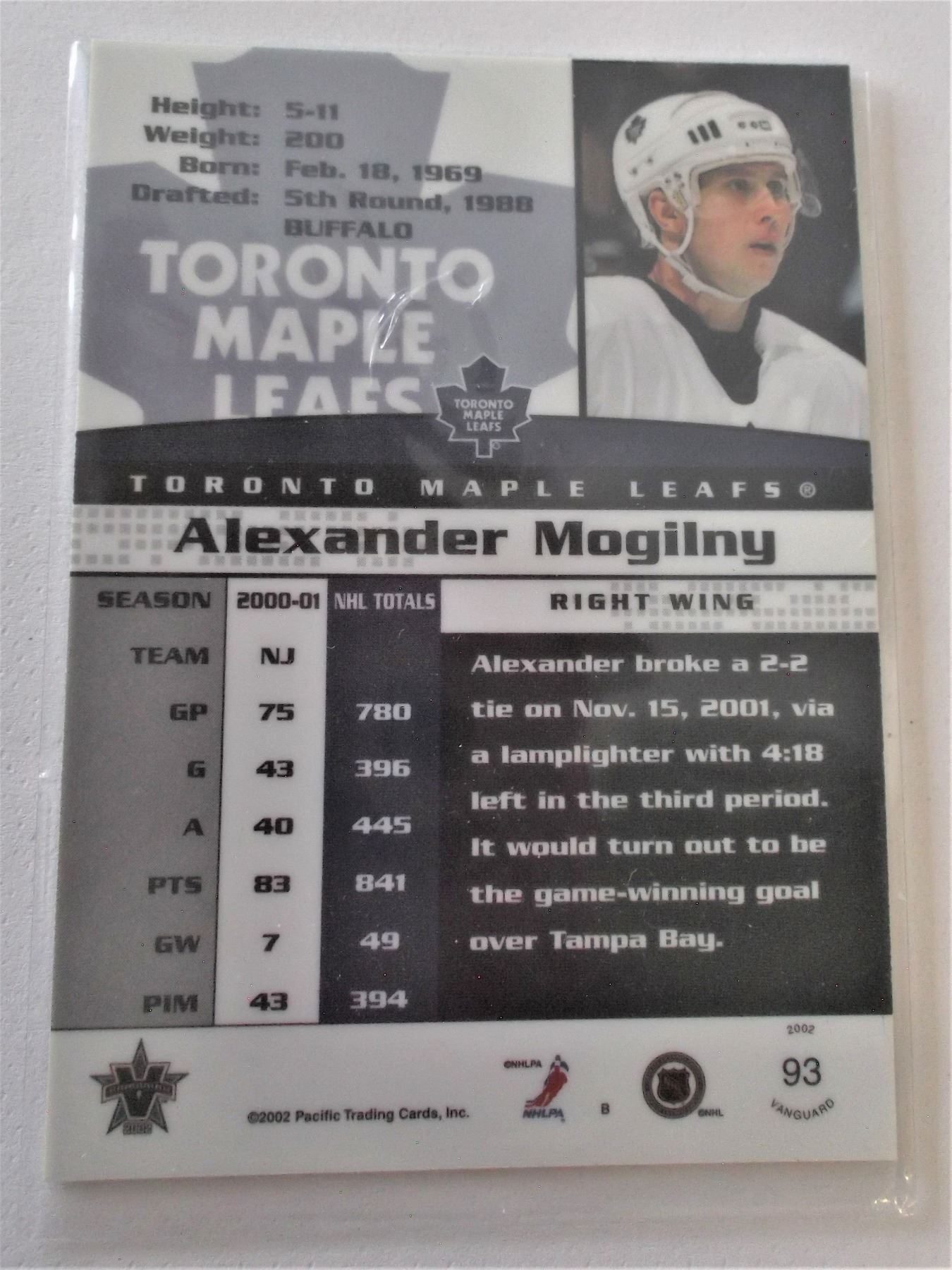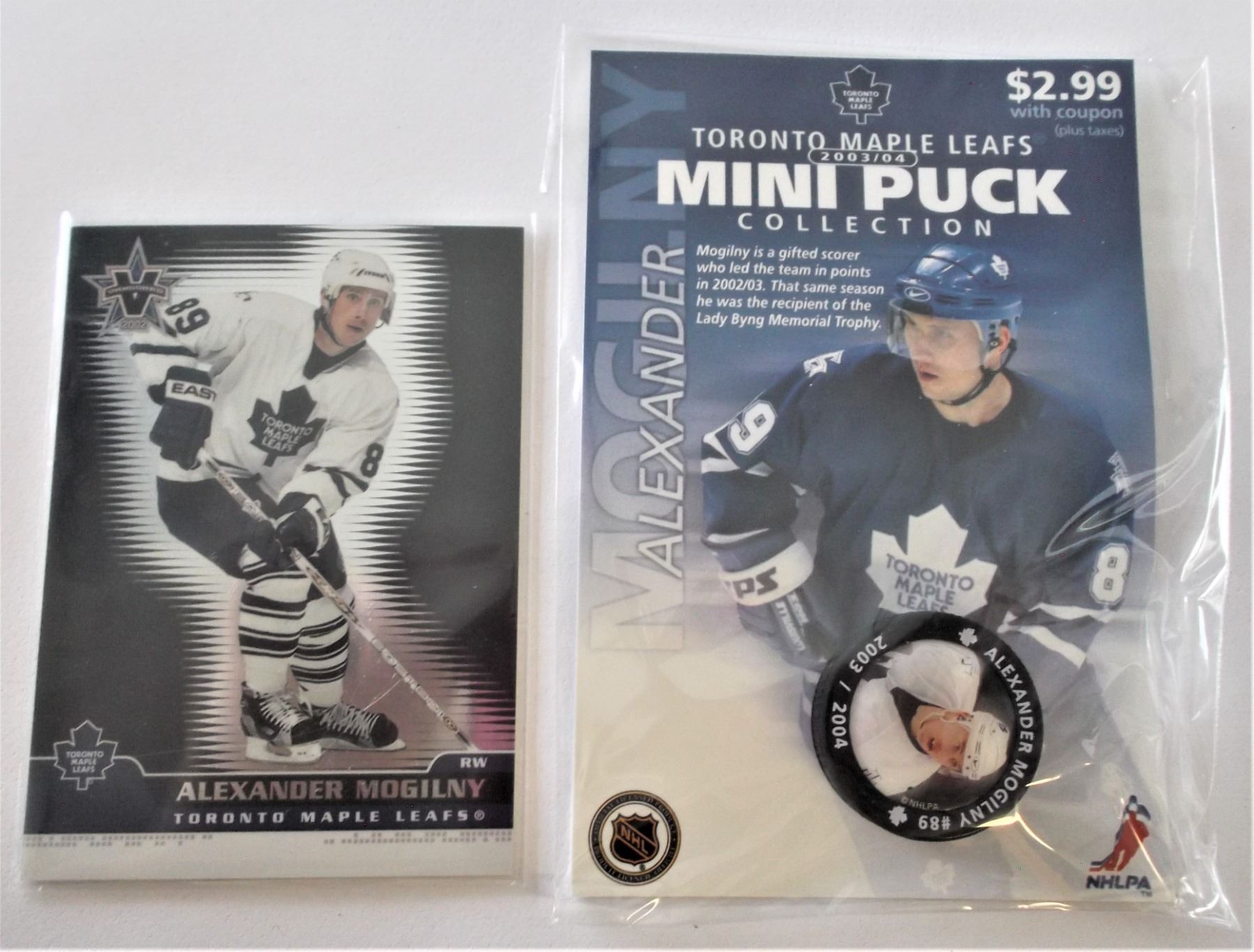 Alexander Mogilny 2002 Vanguard Hockey Card and Toronto Maple Leafs 2003/04 Mini Puck