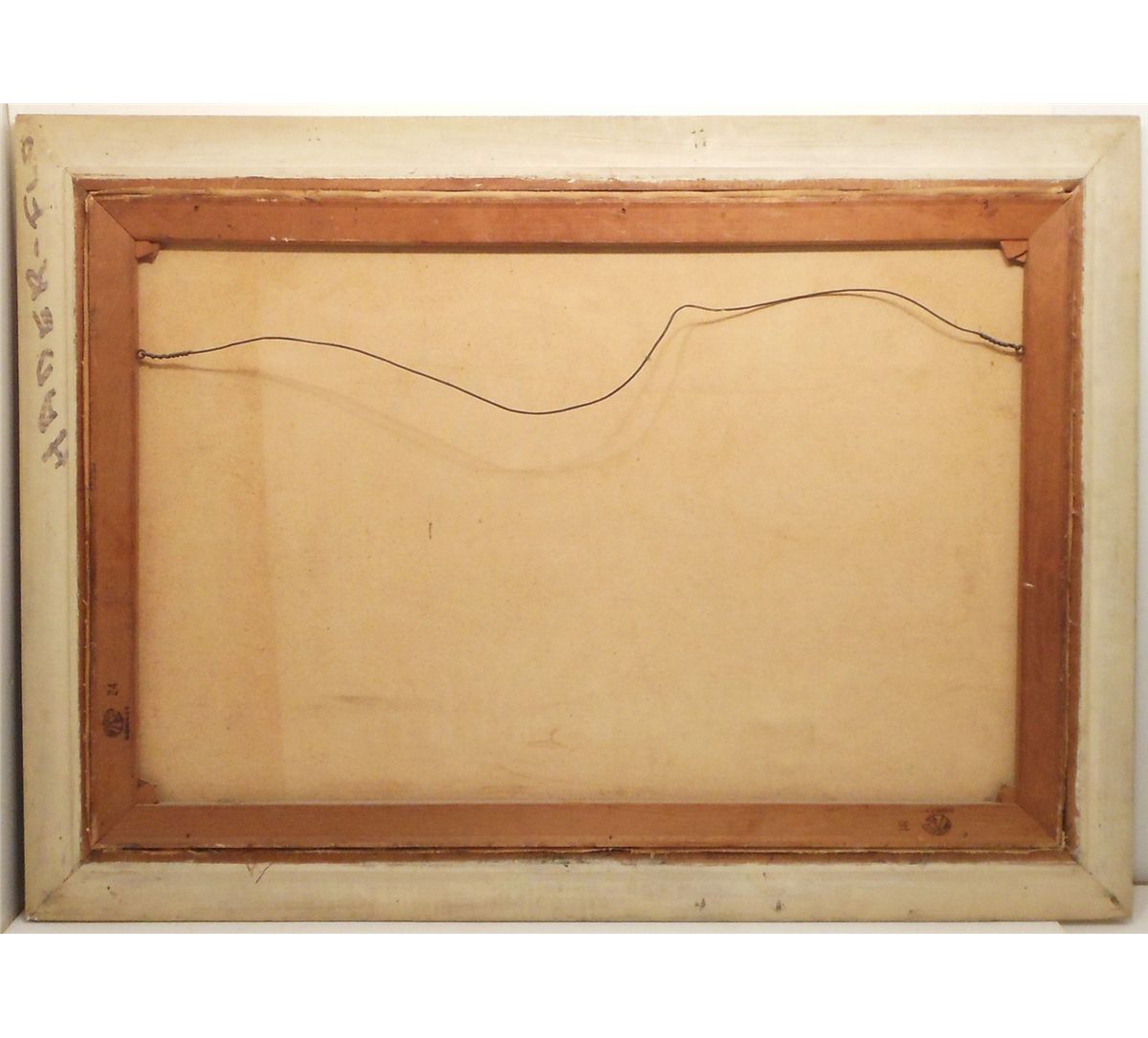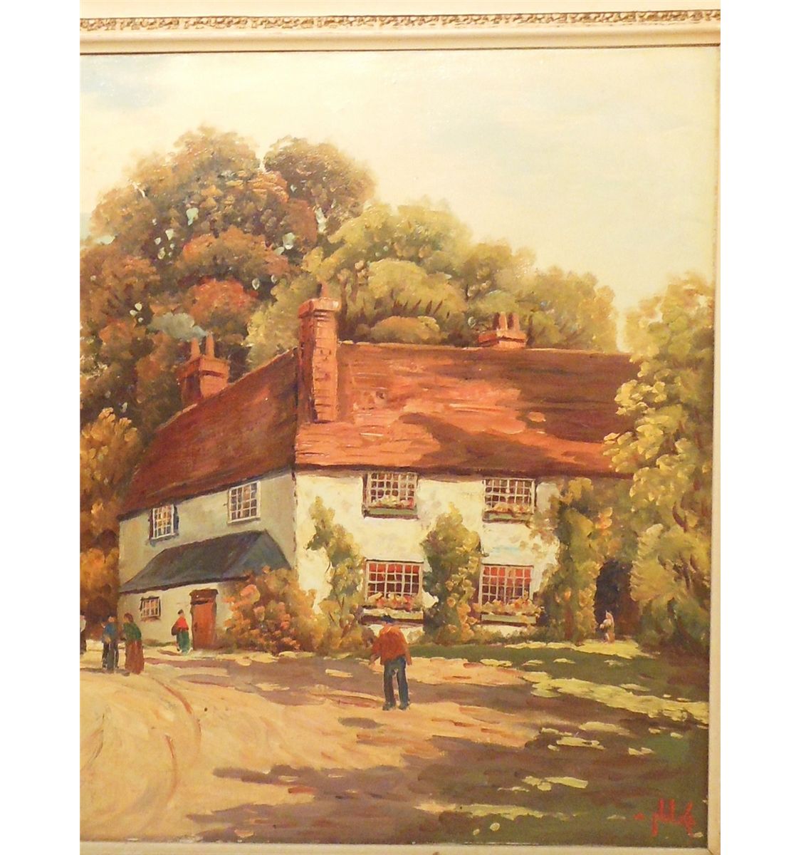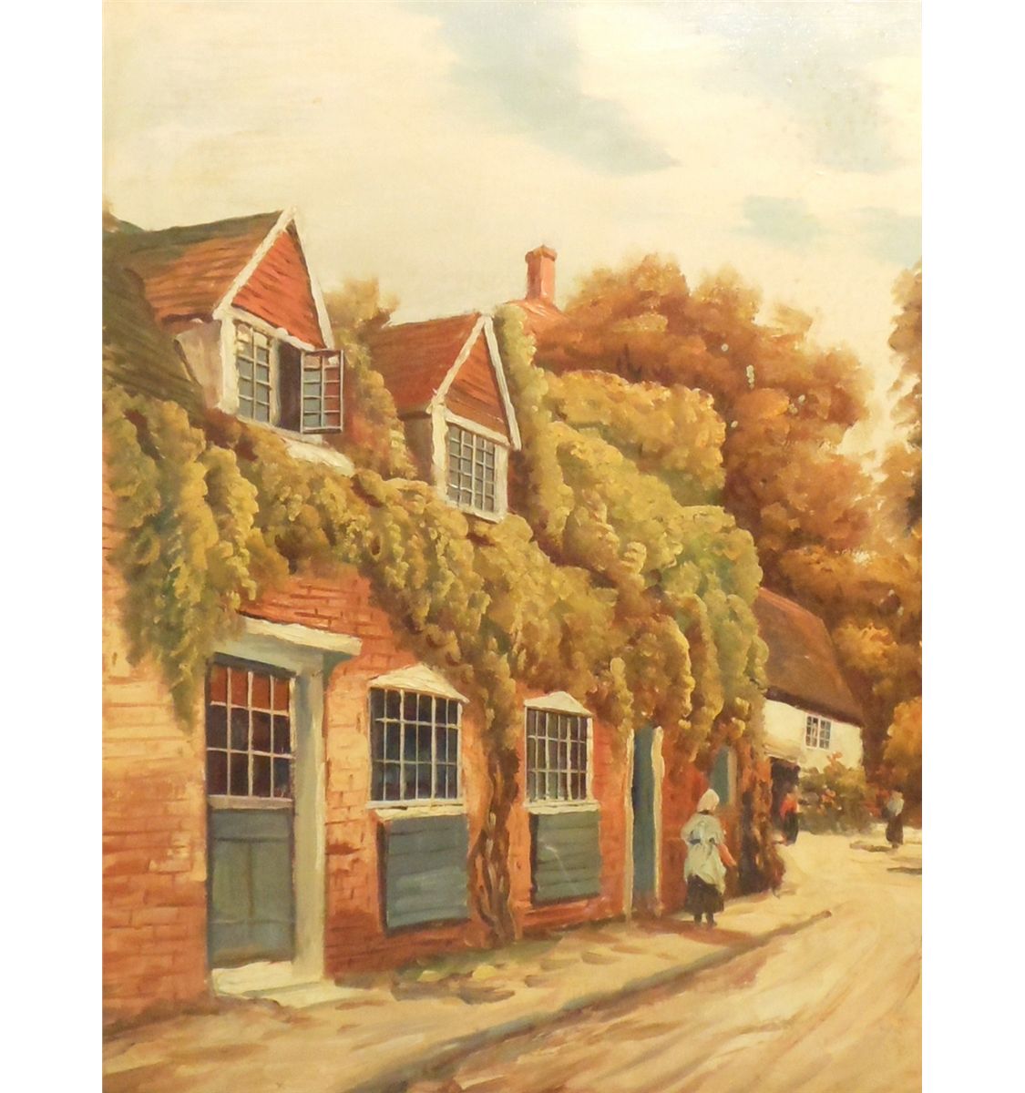 35 1/2" X 23 3/4" in a 42 3/4" X 30 1/2" Frame. Alexander Nelke (1984-1974) New York Artist. Oil On Canvas of a Village scene. Signed in the lower right corner. Great Condition with some cracklature, a small indentation, and some discoloration/staining. (See Pictures) Frame is in Good Condition with some paint loss and areas of wear/small cracks to the wood.