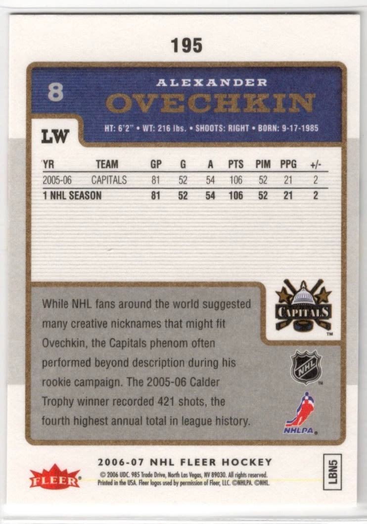 Alexander Ovechkin 2nd Year Card 2006-07 Fleer #195