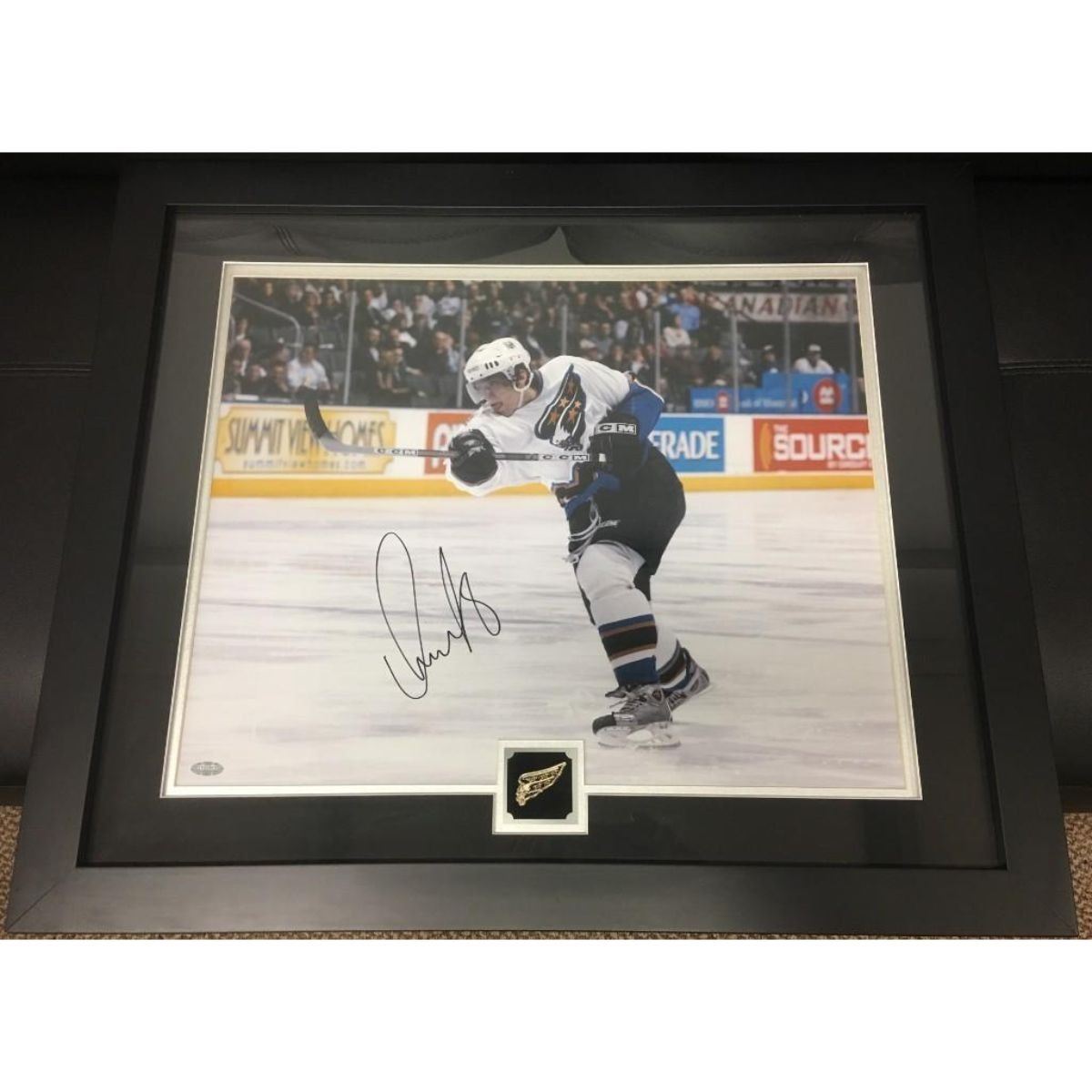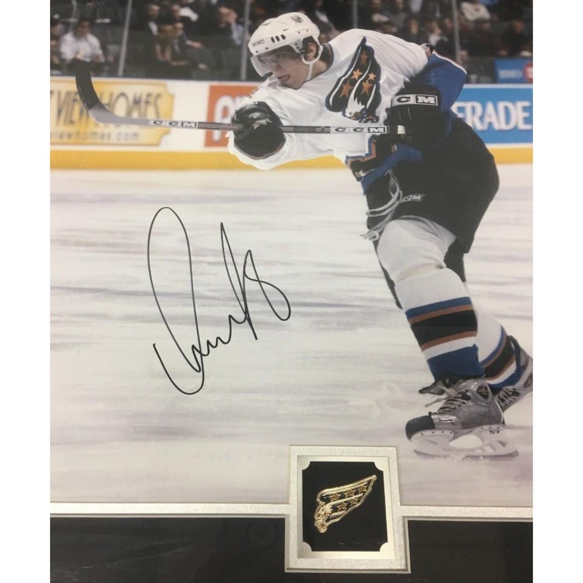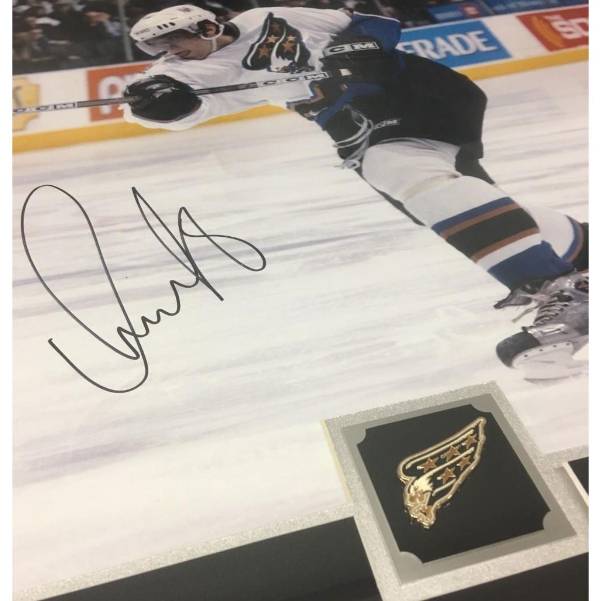 An Alexander Ovechkin Autographed 20" x 24" Framed Rookie Year Photo With Steiner COA. A Future Hall Of Fame Player, Stanley Cup Champion Captain Of The Washington Capital. This Picture Is Custom Framed With A Shadow Box Matt Cut And Inset Mounted Washington Capitals Pin In The Picture. Framed Picture Is Accompanied By A Steiner Certificate of Authenticity. Truly One Of The Nicest Framed Collector Pieces You Will See. A One Of A Kind Rookie Year Signed Framed Piece Of A Truly Scoring Legend Of The Game. View Photos For Further Details.