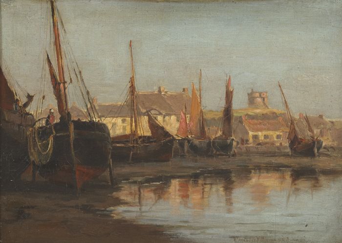 Alexander Williams RHA (1846-1930) - HARBOUR SCENE WITH MARTELLO TOWER IN THE DISTANCE