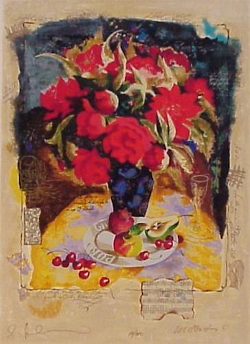 BOUQUET IN THE DARK, color screenprint, signed in pencil, from the numbered edition 380, image 20 ¼ x 14 ¾”, full margins, framed with glass. $100/200