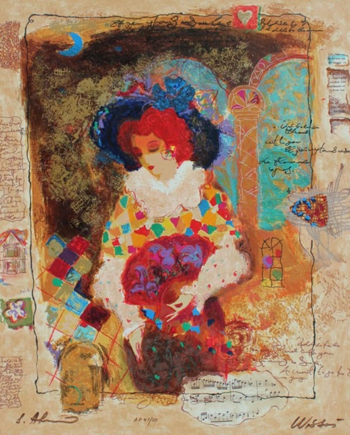 Artist: Alexander & Wissotzky - Title: Caroline - Medium: Serigraph on Paper - Signature: Hand-signed by the Artist - Limited Edition: AP 50 - Image Size: Approximately 20 inches x 16 inches - Unframed - Details: This work comes with a Certificate of Authenticity - The work of Alexander and Wissotzky has received critical acclaim and success in both Israel and abroad and can be found in public and private collections all over the world. Sadly, Tanya Wissotzky lost her battle with cancer in November of 2006.Alexander Galtchansky has also passed away just a few years later.
