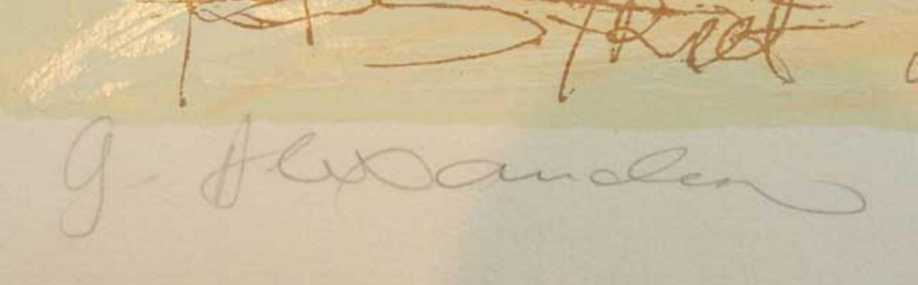 Artist: Alexander & Wissotzky - Title: Waiting for a Happening - Medium: Serigraph on Paper - Signature: Hand-signed by the Artist - Limited Edition: 295 - Image Size: Approximately 29 inches x 44 inches - Framed: Unframed - Details: This work comes with a Certificate of Authenticity - The work of Alexander and Wissotzky has received critical acclaim and success in both Israel and abroad and can be found in public and private collections all over the world. Sadly, Tanya Wissotzky lost her battle with cancer in November of 2006.Alexander Galtchansky has also passed away just a few years later.