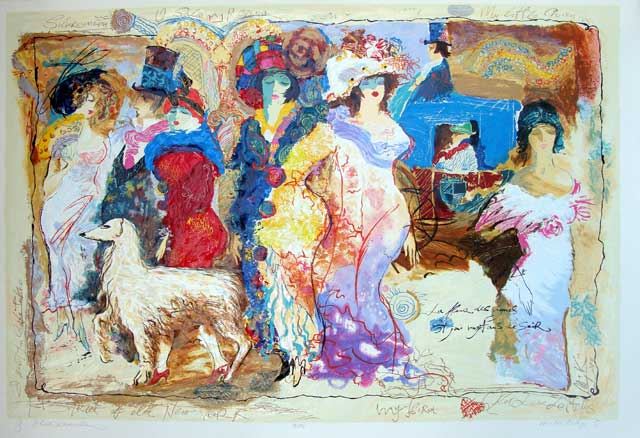 Artist: Alexander & Wissotzky - Title: Waiting for a Happening - Medium: Serigraph on Paper - Signature: Hand-signed by the Artist - Limited Edition: 295 - Image Size: Approximately 29 inches x 44 inches - Framed: Unframed - Details: This work comes with a Certificate of Authenticity - The work of Alexander and Wissotzky has received critical acclaim and success in both Israel and abroad and can be found in public and private collections all over the world. Sadly, Tanya Wissotzky lost her battle with cancer in November of 2006.Alexander Galtchansky has also passed away just a few years later.