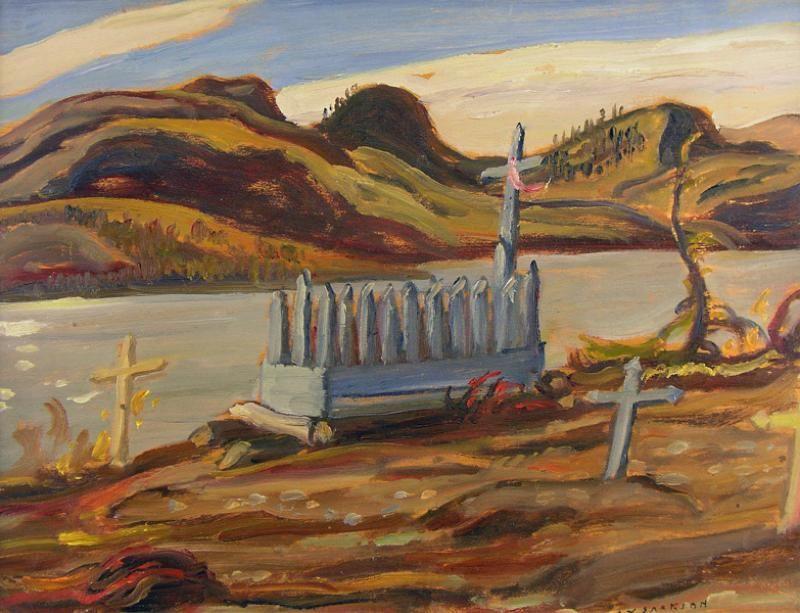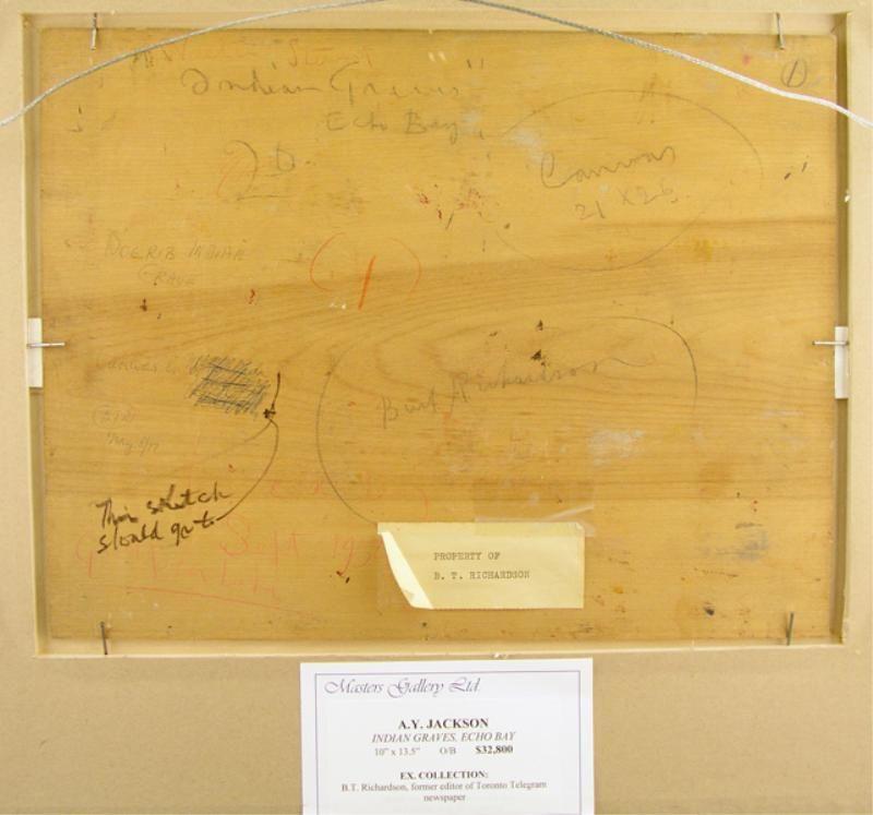 Canadian CGP, G7, OSA, RCA [1882-1974] INDIAN GRAVES, ECHO BAY oil on panel 10.25 x 13.5 in. (26 x 34.3 cm) signed & titled Provenance: former collection of Burt T. Richardson, Toronto; Master's Gallery, Calgary