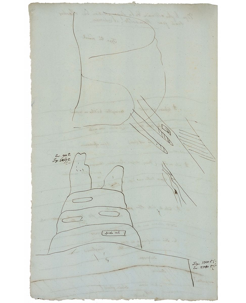 After his extensive travels in Latin America at the turn of the century, Humboldt began work on what would become a 21-year project, describing the lands he explored on his journey for the first time from a modern scientific point of view. He found the intellectual and social stimuli he craved in the vibrant cultural center of Paris, where he mingled with some of science’s greatest minds, including Joseph Fourier. With this letter to noted mineralogist and geologist Louis-Benjamin Fleuriau, Humboldt is most likely passing on Fourier’s Théorie Analytique de la Chaleur (The Analytic Theory of Heat), published in 1822, which reasoned that the flow of heat between two adjacent molecules is proportional to the extremely small difference of their temperatures; the book made major contributions to mathematics and physics, including the law of heat conduction, now known as Fourier's law. Beyond the excellent association to this major scientific figure, Humboldt’s detailed geological sketches hold extraordinary value. Known for his extensive theories on magnetism, volcanicity, seismology, and tectonics, his work on rock formations is incredibly important—and incredibly beautiful, in these hand-sketched pieces. This is the first major Humboldt item we have offered in over 30 years.