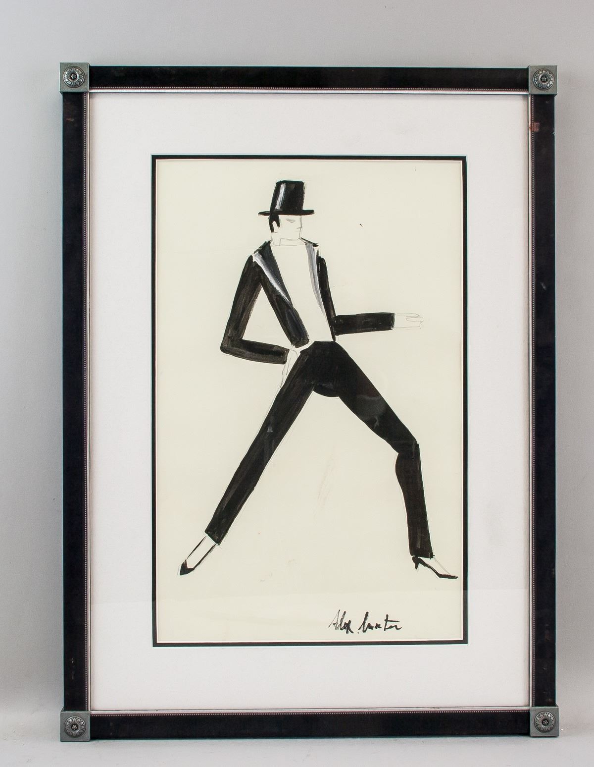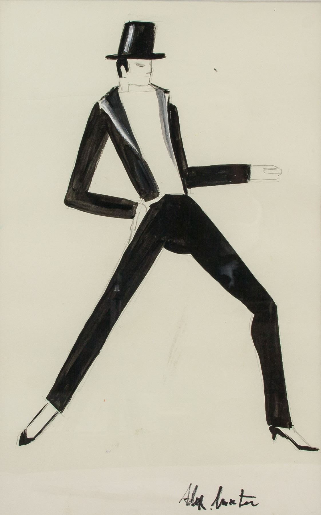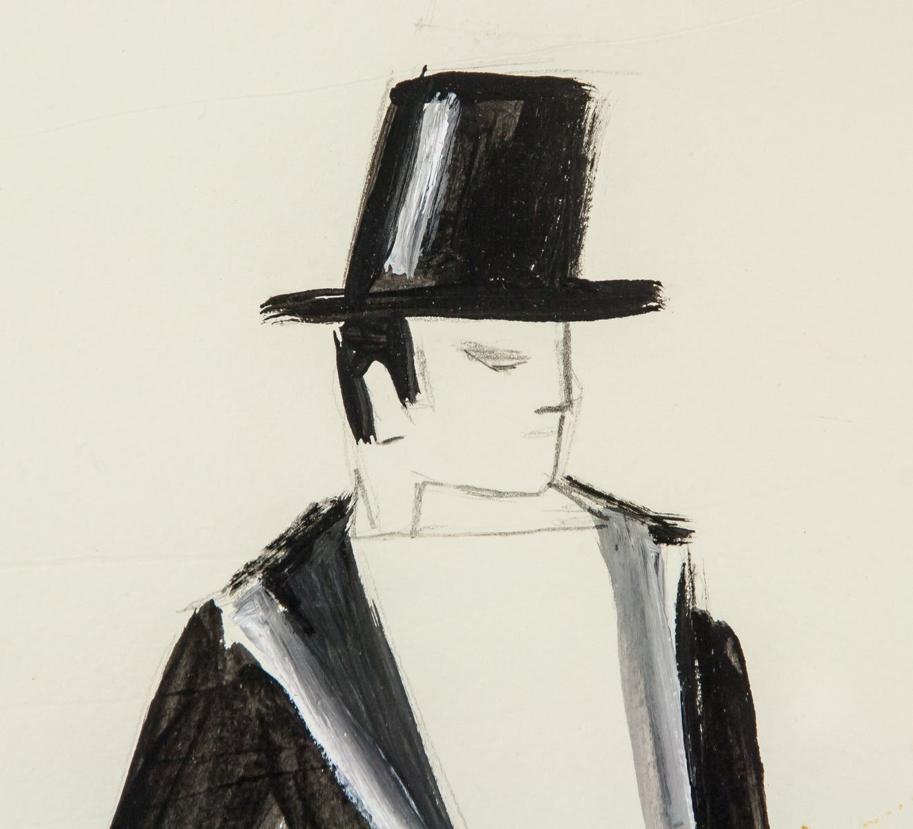 Mixed media on paper, framed. Featuring a man dressed in a tuxedo. Signed Alex Exter on the lower edge. Attributed to Alexandra Exter (1884-1949, Russian-Ukrainian). 41.5 x 26.5 cm (16.3 x 10.4 inches). Frame size: 58 x 43 cm (22.8 x 16.9 inches). PROVENANCE: Southern Ontario estate