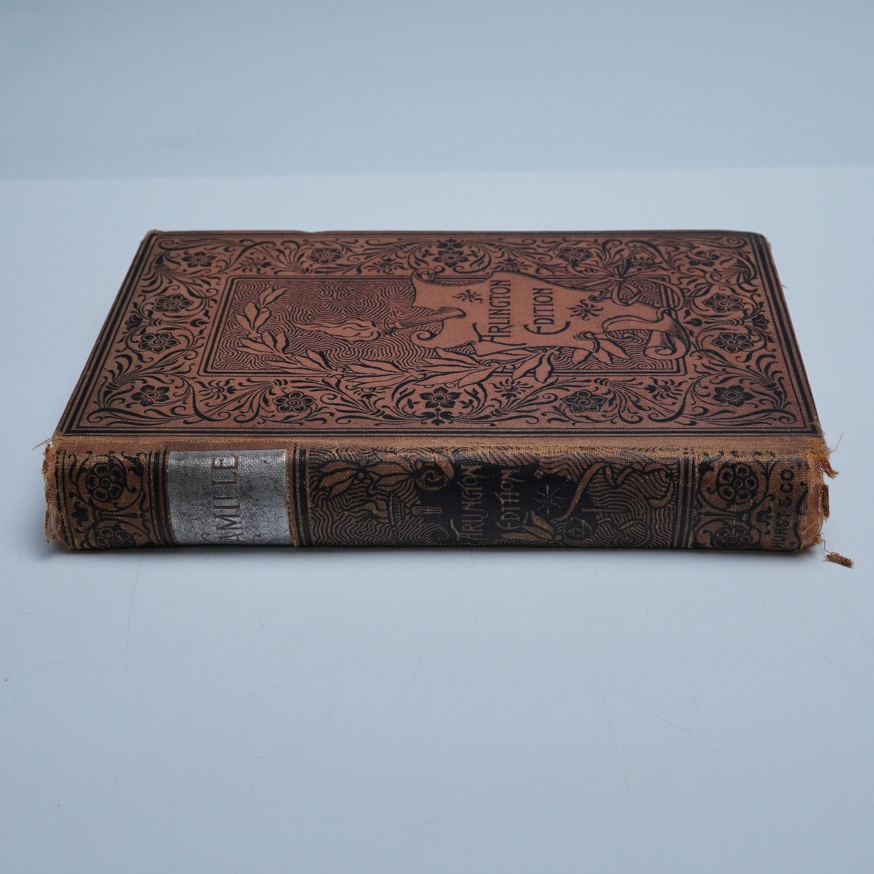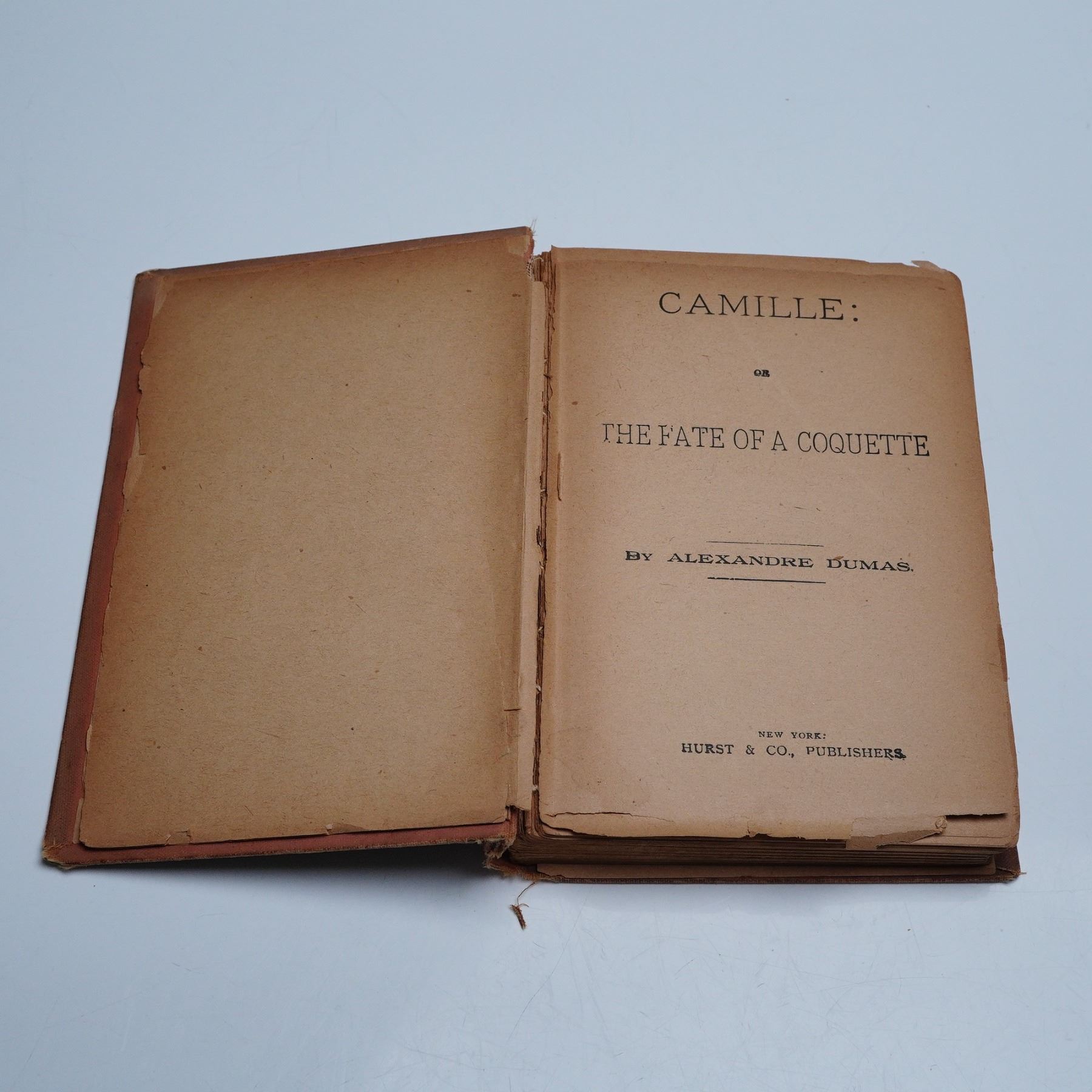 Arlington Edition printing of Camille: or The Fate of a Coquette by Alexandre Dumas, published by Hurst & Co., New York. Bound in embossed decorative cloth with floral and torch motif on the front and spine. This edition was likely published between 1885 and 1905, during the height of Hurst & Co.'s Arlington Edition series. Features classic typesetting and period design throughout. 102 pages. Measures 5"L x 7.5"H.