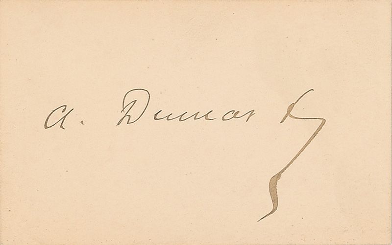 Ink signature, “A. Dumas,” on an off-white 3.5 x 2.25 card. In fine condition.