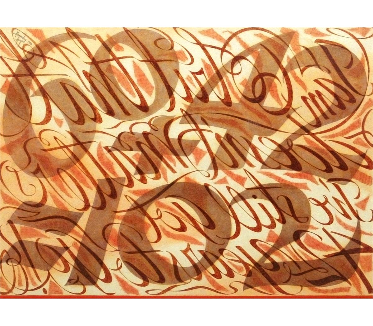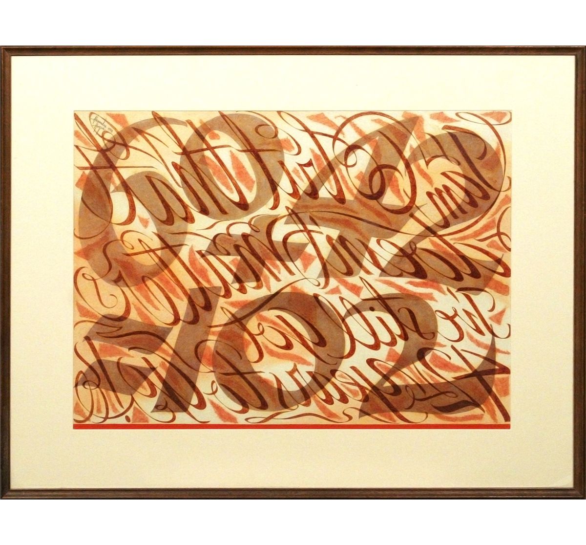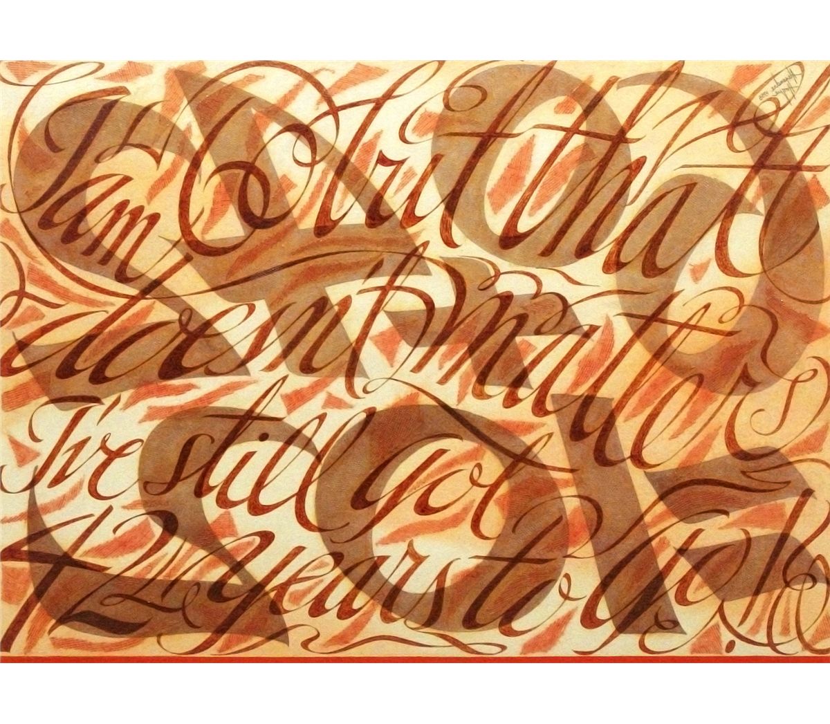 Alexandre Hogue (1898 - 1994). 60 + 42 = 102. 21" x 28.5" mixed media. Inversed writing: I am 60 but that doesn’t matter, I’ve still got 42 years to go. Signed upper left: Alexandre Hogue 1958.