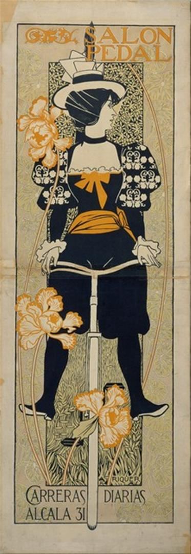 Artist: Alexandre de Riquer - Title: Salon Pedal - Medium: Fine Art Giclee on Canvas - Image Size: Approximately 32 inches x 11 inches - Unframed on Unstretched Canvas - Alexandre de Riquer i Ynglada, 7th Count of Casa Dávalos (Catalan pronunciation: [?l?k'sand?? ð? ri'ke]) (Born 3 May 1856 - 13 November 1920), was a versatile artist intellectual and Catalan designer, illustrator, painter, engraver, writer and poet. He was one of the leading figures of Modernisme in Catalonia. He belonged to an aristocratic family, the Counts of Casa Dávalos. His father, Martí de Riquer, Marquis of Benavent, was a senior leader of the Carlist of Catalonia, while his mother, Elisea Ynglada, belonged to a family of intellectuals and artists (including writers such as Joseph and Wifred Coroleu and painter Ricard Modest Urgell).