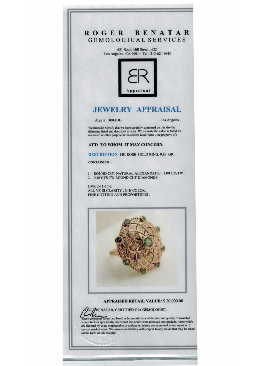 Alexandrite 1.0 ct & Diamond 0.46 ct Ring 9.83 gr 14 Rose Gold