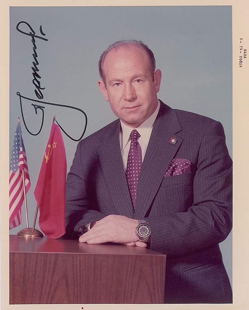 Official color satin-finish 8 x 10 ‘red-numbered’ NASA photo, signed vertically in black felt tip. In very fine condition.