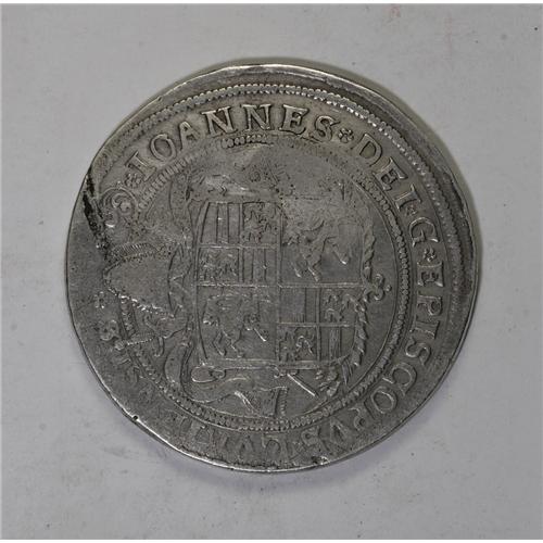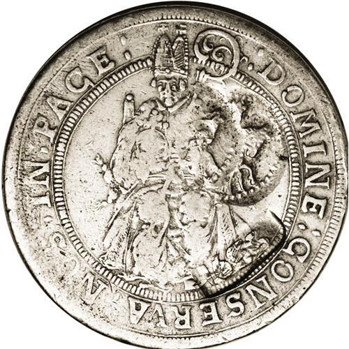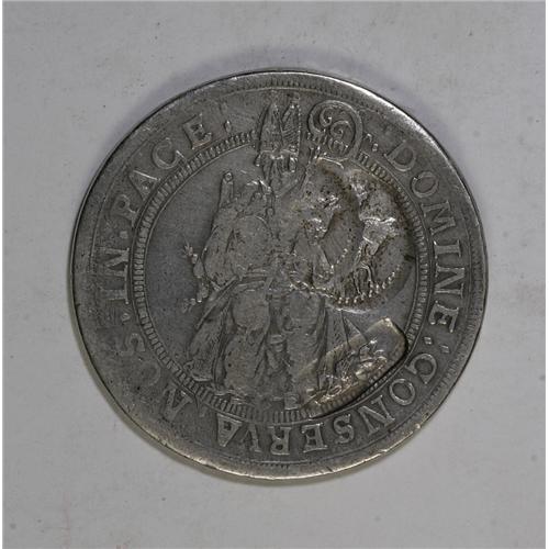 <B>Alexei Michailovitch. Jefimok Rouble 1655,</B></I> Horseman and 1655 counterstamped on an undated Taler of the Swiss Bishopric of Chur (Dav-4661), one of only two known Russian Jefimok counterstamps on a Chur Taler, missing from the Willy Fuch's collection, Spassky-1495 records the only other known Chur Jefimok and that of a different type, the rider countermark is double-struck, Fine and extremely rare.<BR><BR><b>Shipping:</b> Coin/Currency (<a target="_blank" href="http://www.heritageauctions.com/common/shipping.php">view shipping information</a>)