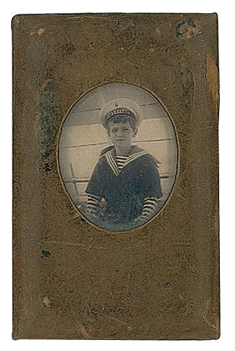 Heir apparent to the throne of the Russian Empire (1904–1918) who was the youngest child and only son of Emperor Nicholas II and Empress Alexandra Feodorovna; at the age of 13, he was executed alongside his parents, four sisters, and three retainers by forces of the Bolshevik secret police. Unsigned original 1 x 1.25 photo of Alexei Nikolaevich, Tsarevich of Russia, as a young boy wearing his sailor uniform. The photo is housed in its original leather frame. In fine condition.