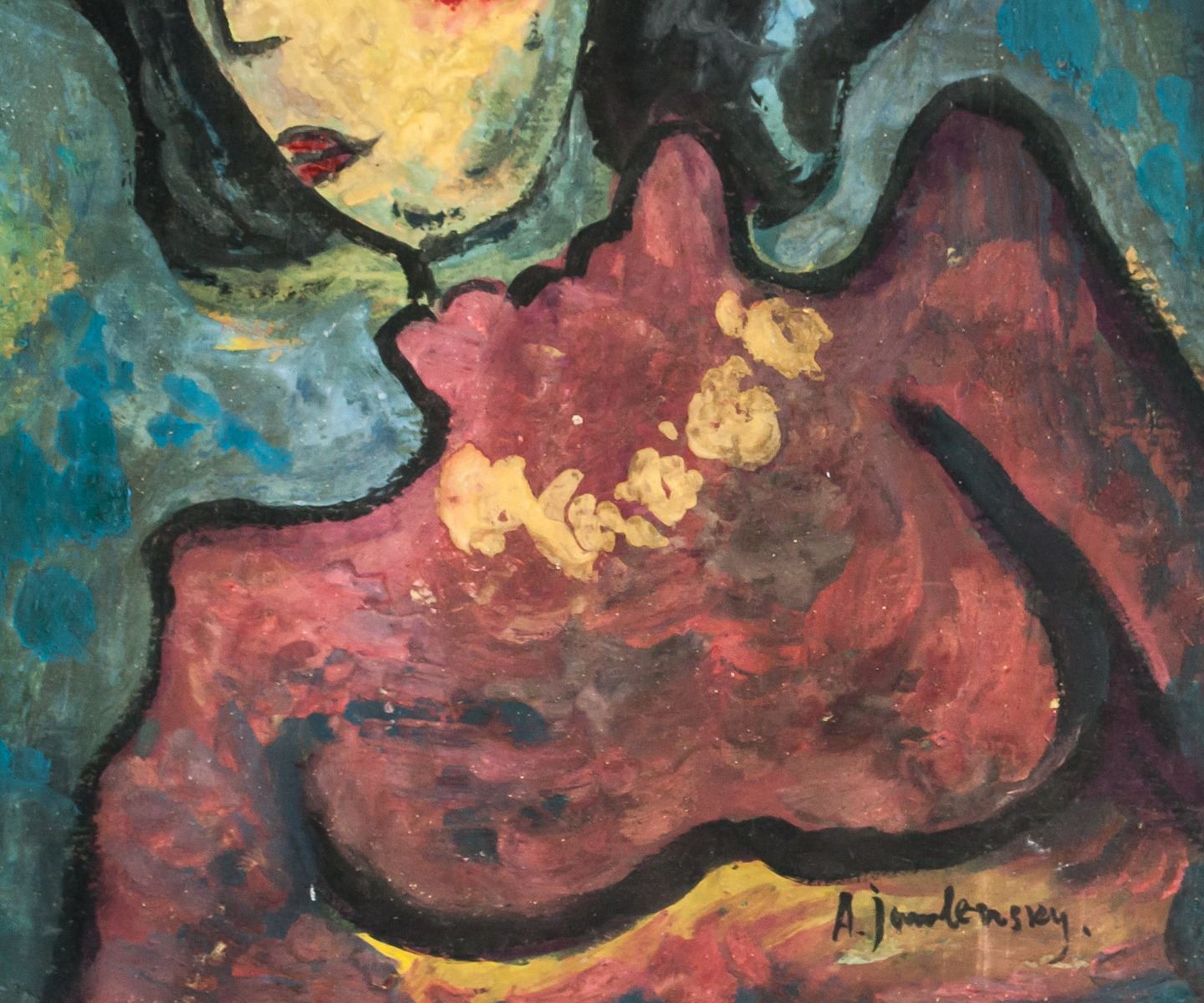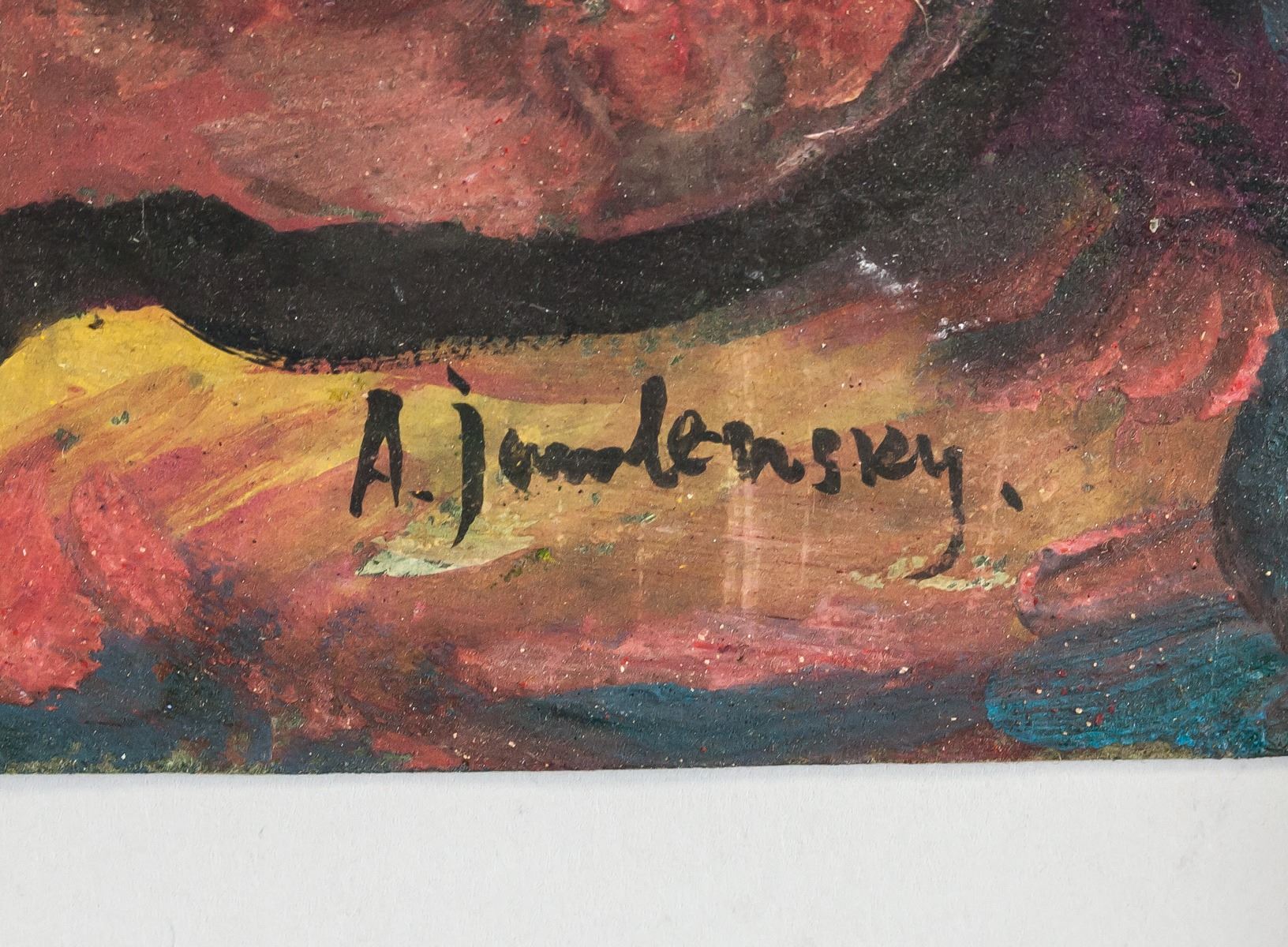 Mixed media on paper. Featuring an expressionist portrait. Signed A. jawlensky on the lower right corner. Attributed to Alexej von Jawlensky (1864-1941, Russian-German). 23.5 x 21 cm (9.25 x 8.25 inches)