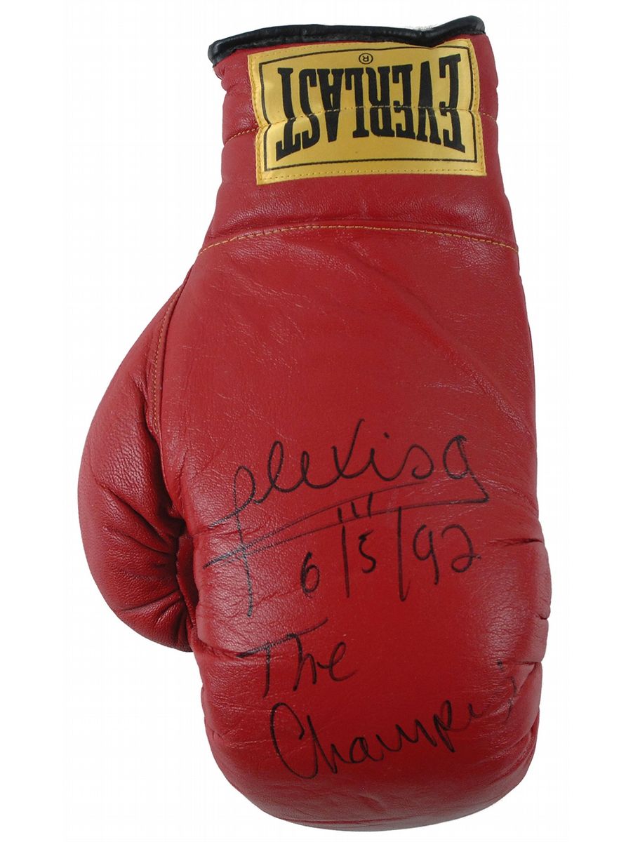 Everlast left-handed 12-ounce boxing glove signed in black felt tip on the top. In fine condition.