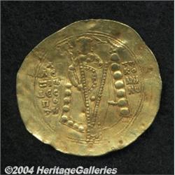 <B>Alexius I.</B></I> 1081-1118. AV hyperpyron (32 mm, 4.10 g). Constantinople, post-reform, 1092-1118. Christ enthroned facing, raising right hand in benediction and holding Gospels / Alexius standing facing, holding labarum and globus cruciger. DOC 20; Hendy pl. 4, 3-5; SB 1913. Near VF. <BR><I>From the Geneva Collection.</B></I> <BR><BR><B>Important notice:</B> Heritage usually auctions material at the rate of 200-250 lots per hour. On some occasions eBay Live bid software or the Internet may not be able to keep up with the pace of the auction. We recommend placing a realistic absentee bid now as insurance to avoid disappointment. Occasionally the auctioneer may eliminate or reject an eBay Live bid, and the auctioneer may also reopen a lot after the close of the eBay live bidding (usually because we missed an audience bid), and may reject your bid even if it shows you as the winning bidder. By bidding via eBay Live, you agree that Heritage may award the lot to another bidder at its sole discretion under the circumstances described above or any other reasonable circumstances. Since eBay bids are not shown to us until we open the lot on the floor, we treat those bids just like floor bids. In most cases the floor responds before the eBay bid is presented to us, due to Internet lag time, so for consistency we have made it a policy that floor bids are always considered first over tie eBay live bids. Also please note that all Heritage lots purchased through eBay Live carry a 20% Buyer's Premium. Please make sure you read the Terms and Conditions before you bid.