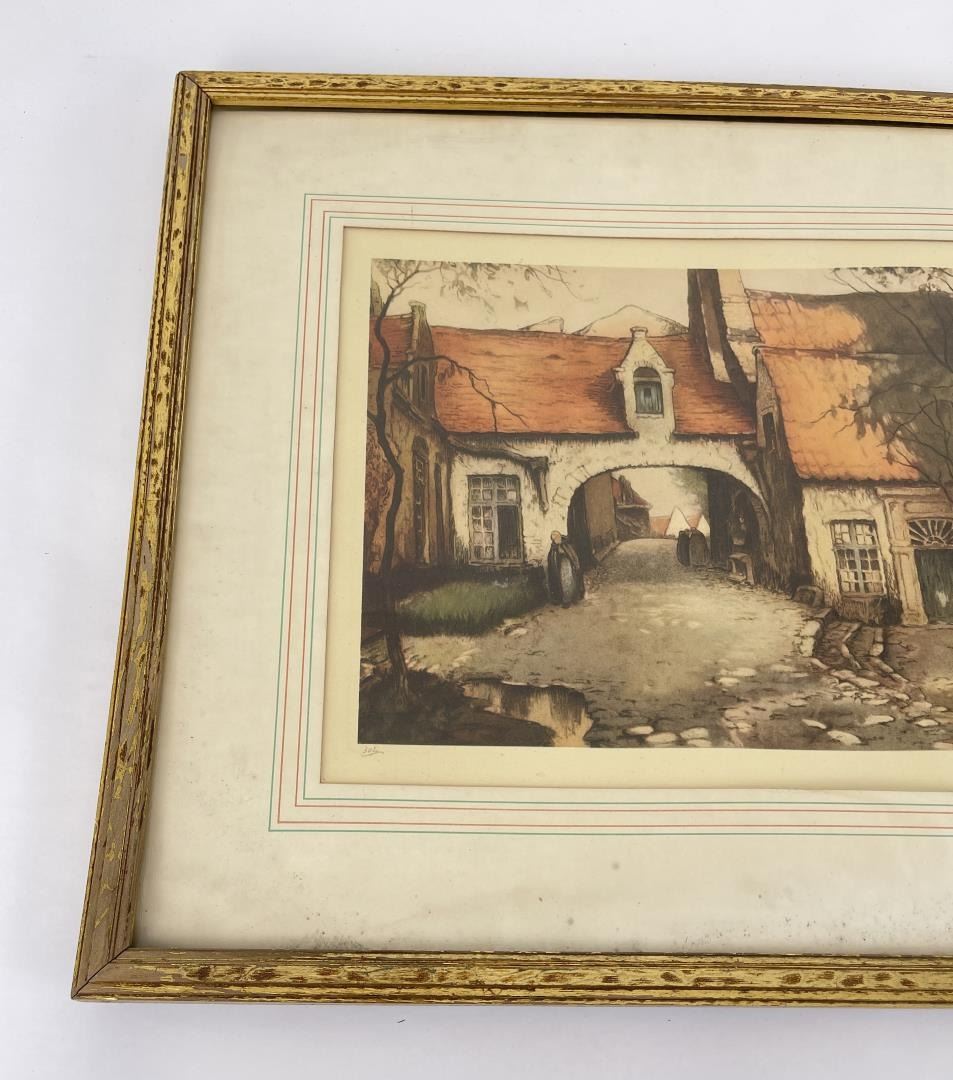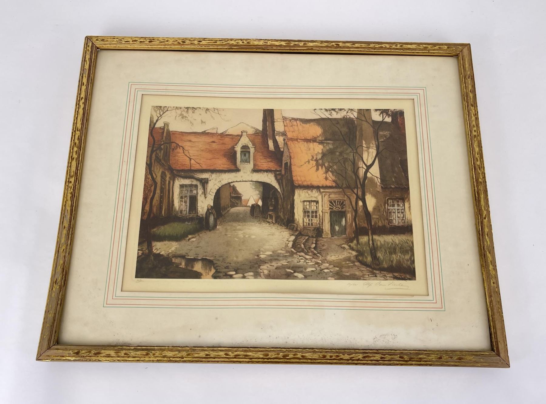 Signed etching. Entree Du Chateaux. 17 1/4" by 21" framed.