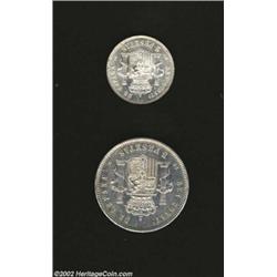 Alfonso XII 5 Pesetas 1878DE-M, KM676, XF+, lightly cleaned and 2 Pesetas 1882 KM678, BU, numerous surface marks. 2 pieces Important notice: We expect to be auctioning lots at the rate of 200-250 per hour. Sometimes eBay Premier live bid software cannot keep up with that pace, so we strongly recommend that you place a realistic proxy bid now as insurance to avoid disappointment. Also please note that all Heritage/CAA lots purchased through eBay Premier carry a 20% Buyer's Premium. Please make sure you read the Terms and Conditions.