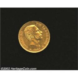 Alfonso XII Gold 25 Pesetas 1881, KM687, Nice XF-AU, fully lustrous. Important notice: We expect to be auctioning lots at the rate of 200-250 per hour. Sometimes eBay Premier live bid software cannot keep up with that pace, so we strongly recommend that you place a realistic proxy bid now as insurance to avoid disappointment. Also please note that all Heritage/CAA lots purchased through eBay Premier carry a 20% Buyer's Premium. Please make sure you read the Terms and Conditions.