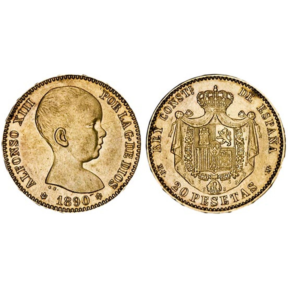 20 pesetas. 1890*18-90. Madrid. MPM. Golpecito en el canto. CAL-5. Au. SC-.