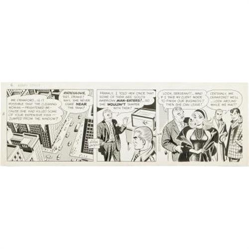 <B>Alfred Andriola - Kerry Drake Daily Comic Strip Original Art (Field Enterprises, undated). </B></I> Crisp, streamlined artwork is the hallmark of this handsome Kerry Drake daily. This daily has a date of 2-25, but the year is unknown. This episode has an image area of 16.5" x 5.5", and the art is in Excellent condition.<BR><BR><b>Shipping:</b> Flat Material, Small (<a target="_blank" href="http://www.heritageauctions.com/common/shipping.php">view shipping information</a>)