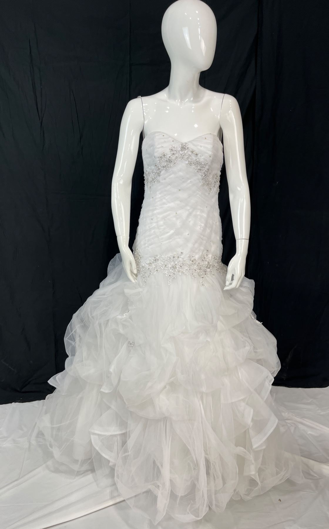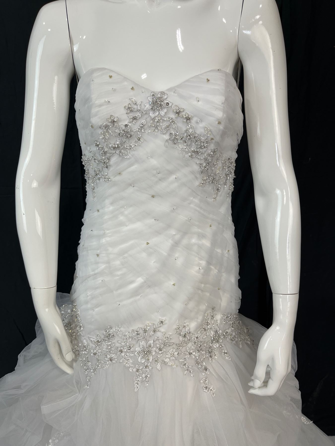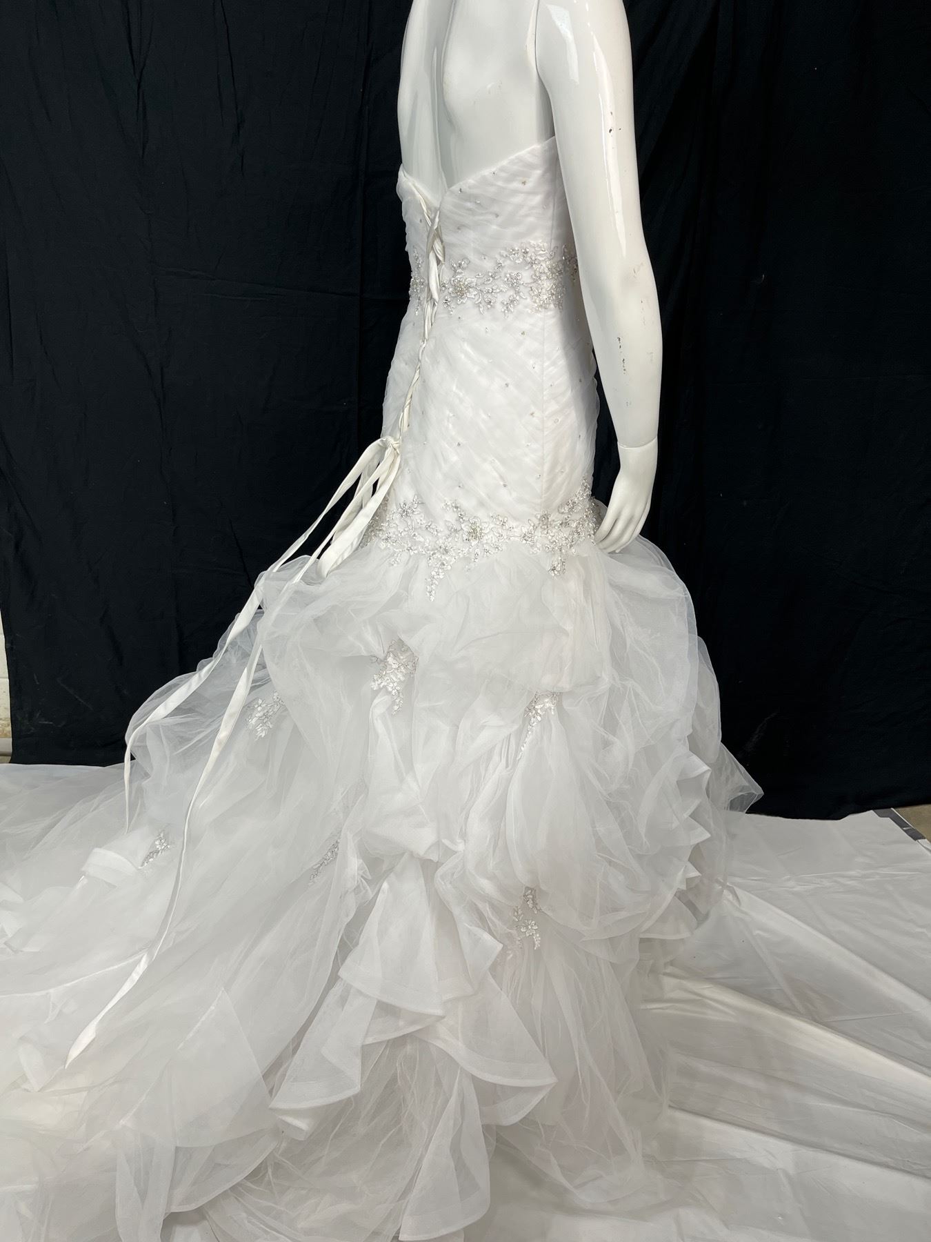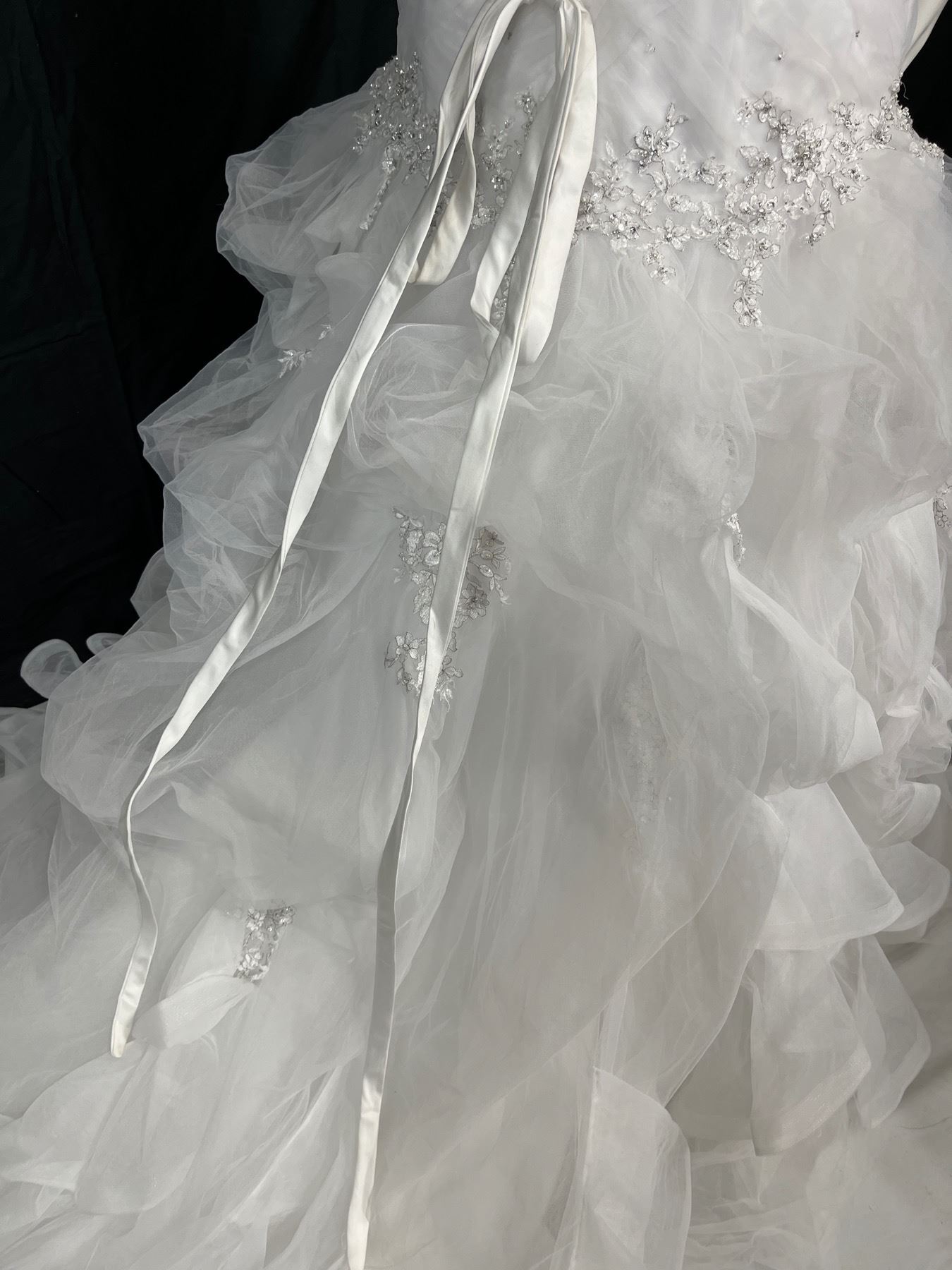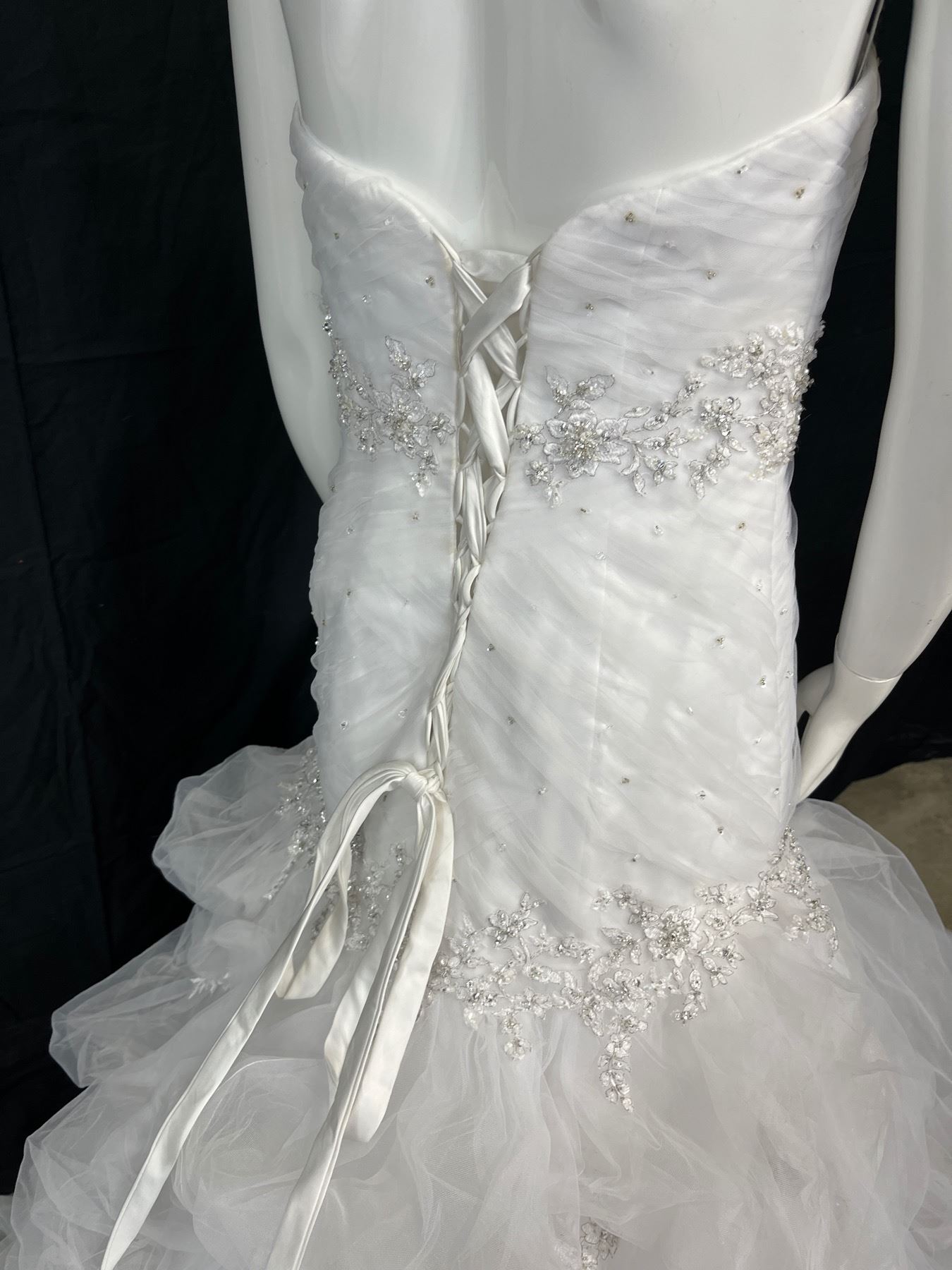 Size 8 - 100% Polyester - Lace up ribbon closure - White - Tuelle & Beeding in good conditon