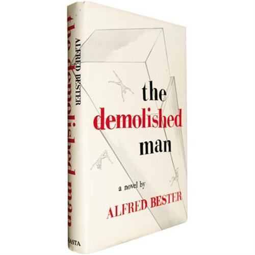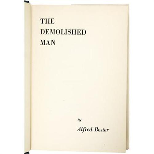 <B>Alfred Bester: <I>The Demolished Man</B></I></B></I> (Chicago: Shasta Publishers, 1953), first edition, jacket design by Martin Herbstman, 250 pages, blue cloth spine, red boards with gilt titles, 8vo (5.75" x 8.25"), fine in fine unclipped jacket. Bester's book, his first novel, was winner of the 1953 Hugo award (the first book to receive this prestigious award) and runner-up for the 1954 International Fantasy Award. A beautiful copy. Number 7 on David Pringle's list of 100 Best Science Fiction novels.<BR><BR><b>Shipping:</b> Books & Catalogs (<a target="_blank" href="http://www.heritageauctions.com/common/shipping.php">view shipping information</a>)
