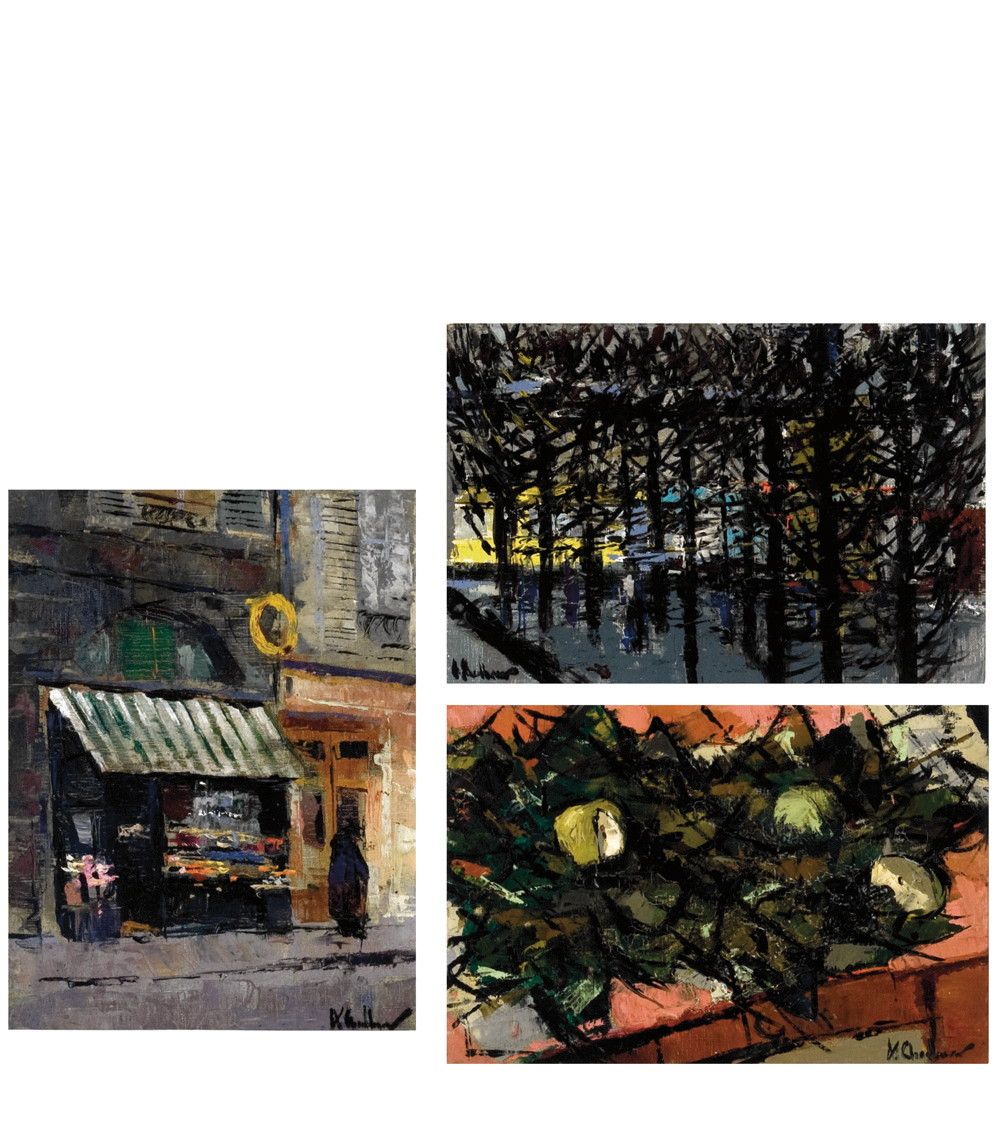 Alfred Chadbourn - Street Market, Sunset Through Trees, and Apples