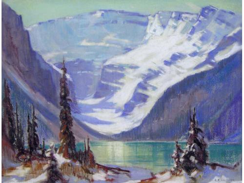 [Canadian ASA, CSPWC, ARCA, RBA 1901-1965] UNTITLED (LAKE LOUISE) Pastel on paper 16 1/2 x 21 1/2 ins. -Signed