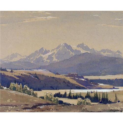 Canadian ASA, CSPWC, RBA, RCA [1901-1965] BOW VALLEY, NEAR MORLEY FLATS watercolour on paper 11.75 x 14.25 in. (29.8 x 36.2 cm) signed