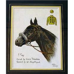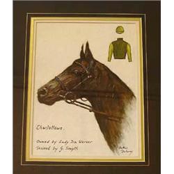 Alfred Delaney; a pair of framed and glazed oil on board portraits of horses Est 3000-4000"Charlottown" and "I Say", signed, 30cm x 22cm (part illustrated) Est 3000-4000