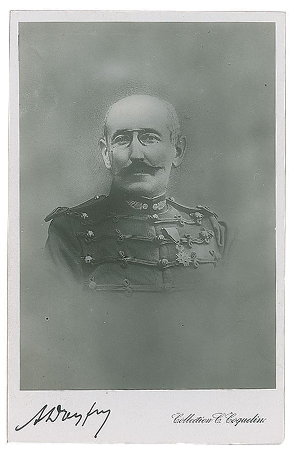 Choice vintage matte-finish 3.5 x 5.5 postcard photo of Dreyfus in uniform, signed in the lower border in black ink, "A. Dreyfus." In very fine condition.
