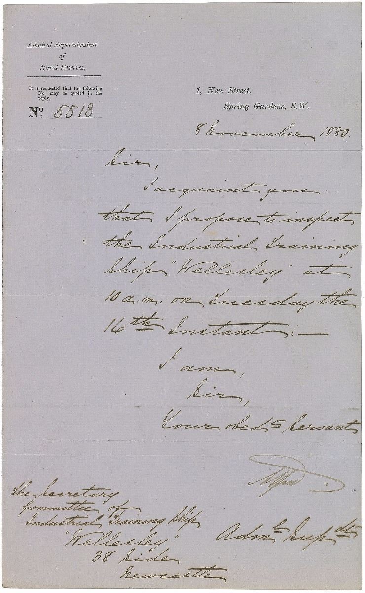 Fourth child of Queen Victoria known for his long career in the Royal Navy (1844–1900). Manuscript DS, signed “Alfred,” one page, 8 x 13, November 8, 1880. Letter to the secretary of the “Committee of Industrial Training Ship ‘Wellesley.’” In full: “I acquaint you that I propose to inspect the Industrial Training Ship ‘Wellesley’ at 10 a.m. on Tuesday the 16th Instant.” In fine condition.