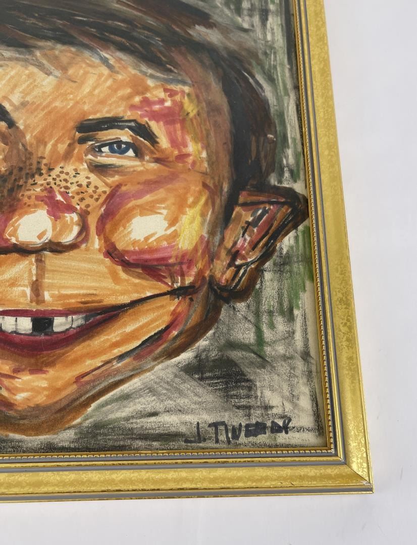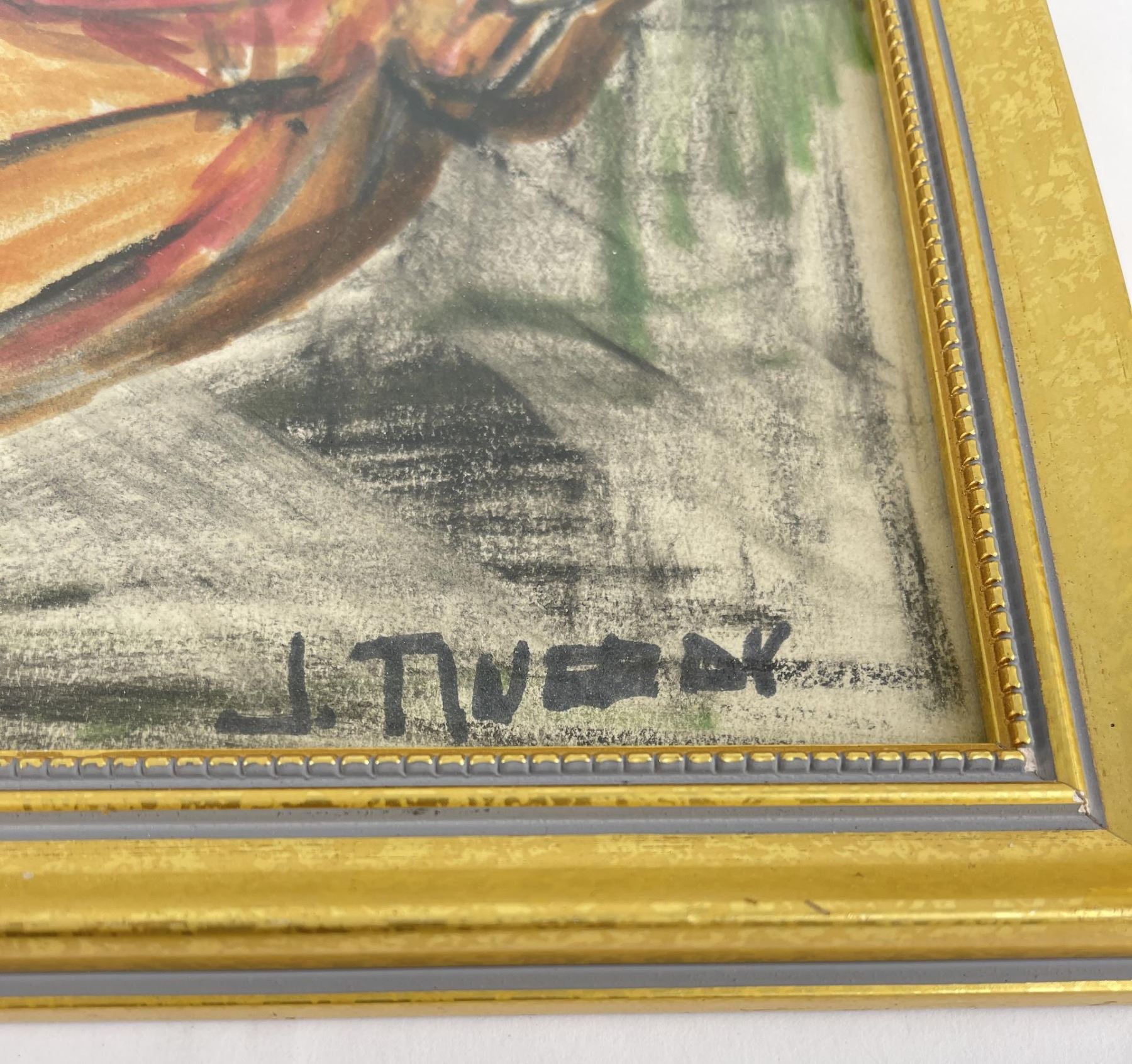 Signed as shown. Artist is possibly Jim Tweedy. 15" by 18.5" framed.