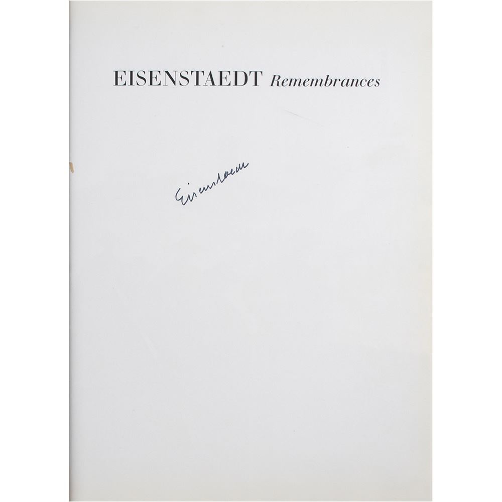 Signed book: Eisenstaedt: Remembrances. First edition. Boston: Little, Brown and Company, 1990. Hardcover with dust jacket, 9.5 x 12.25, 141 pages. Signed on the half-title page in black felt tip, "Eisenstaedt." In fine condition, with minor edgewear and toning to jacket.