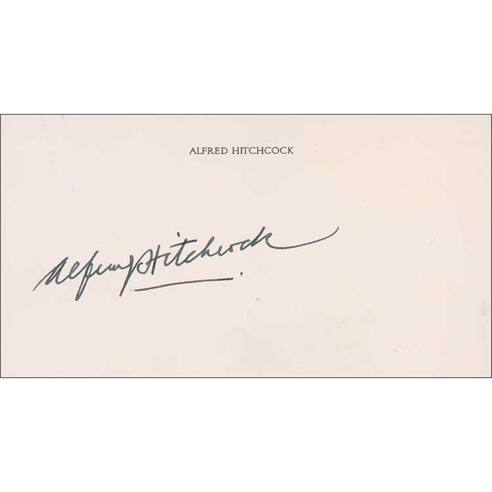 Felt tip signature, “Alfred Hitchcock,” on an off-white 7 x 3.75 card with Hitchcock’s name embossed along the top. Slight paperclip mark to top edge, otherwise very fine condition. Pre-certified PSA/DNA and RRAuction COA.