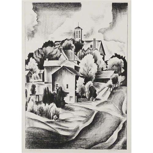 7758 Alfred James Wands (1904-1998) Lithograph "Lisbon Ohio" 50/100 Signed lower right Paper 18" x 13"