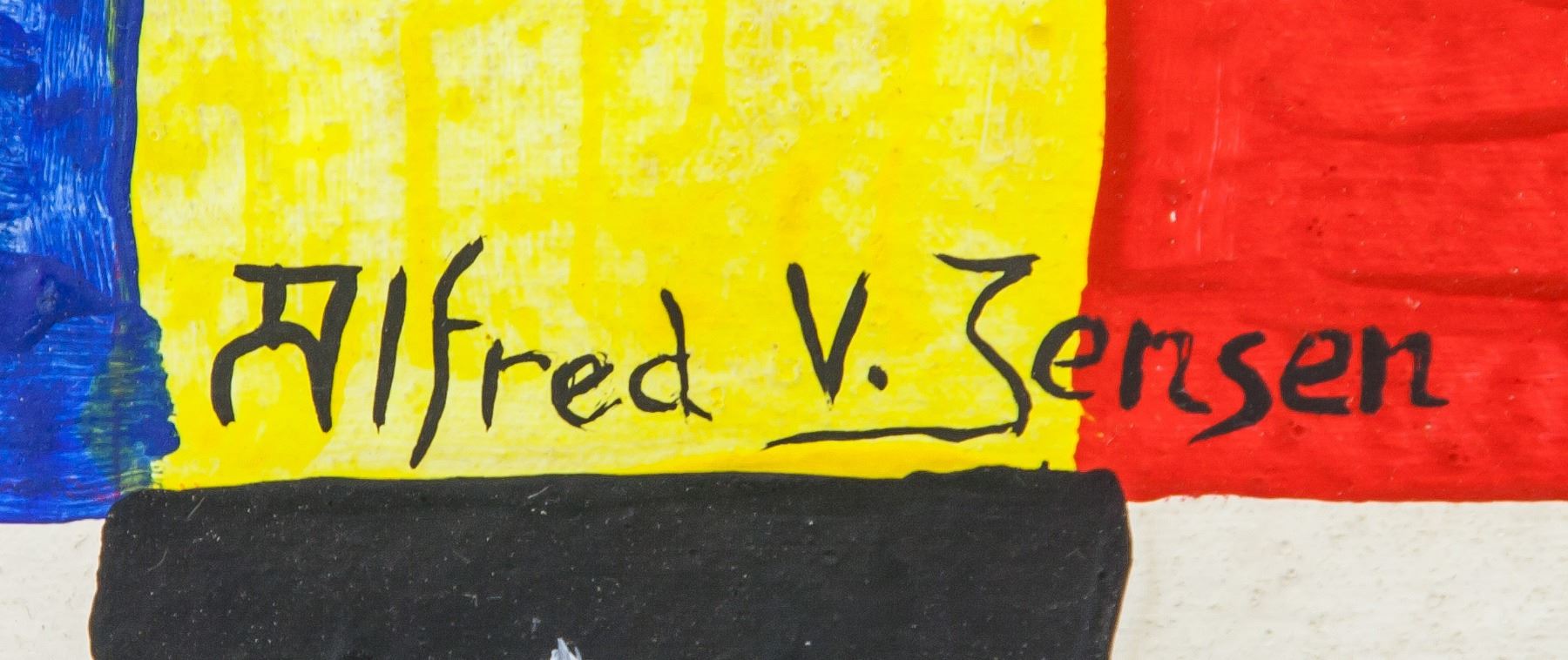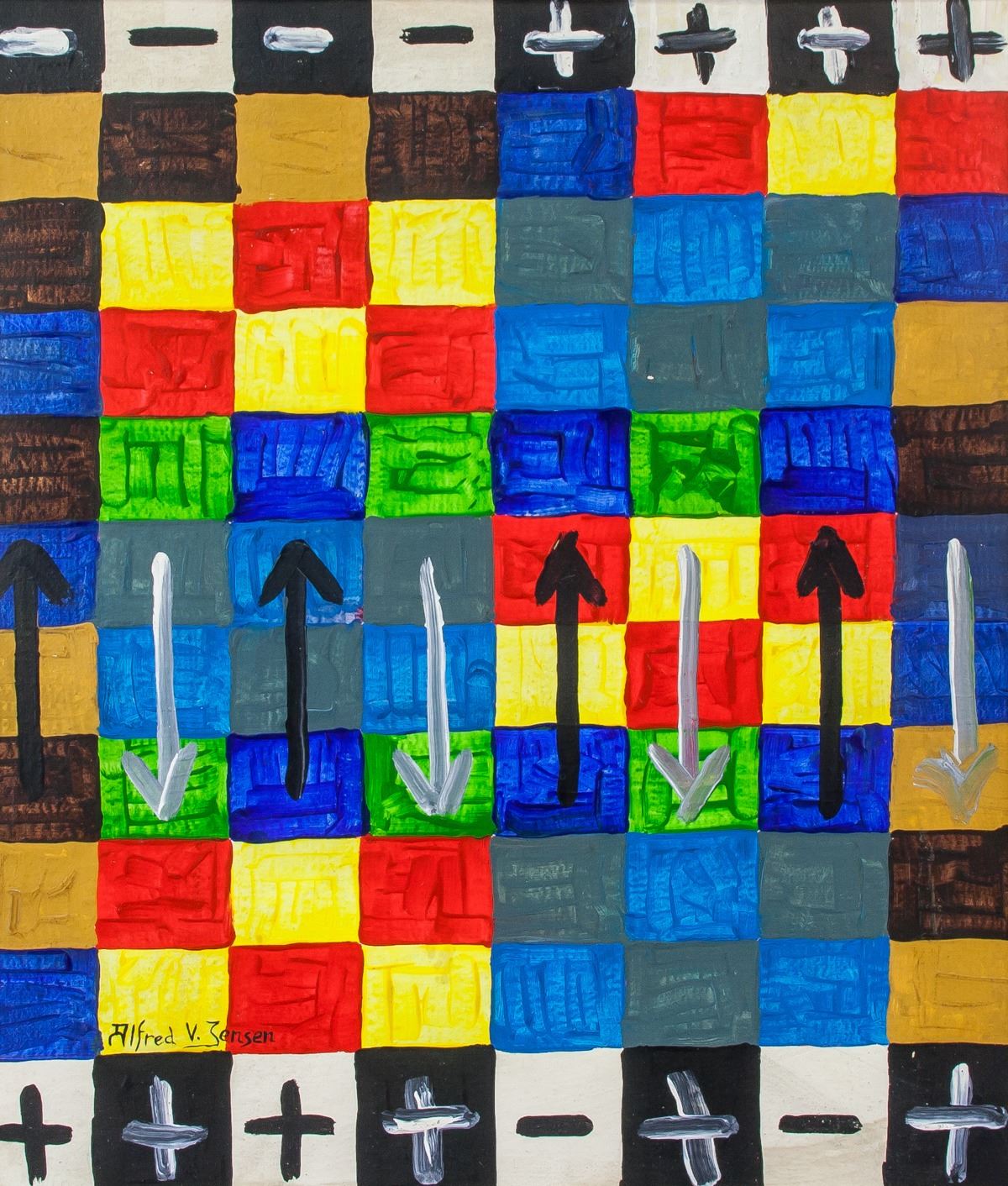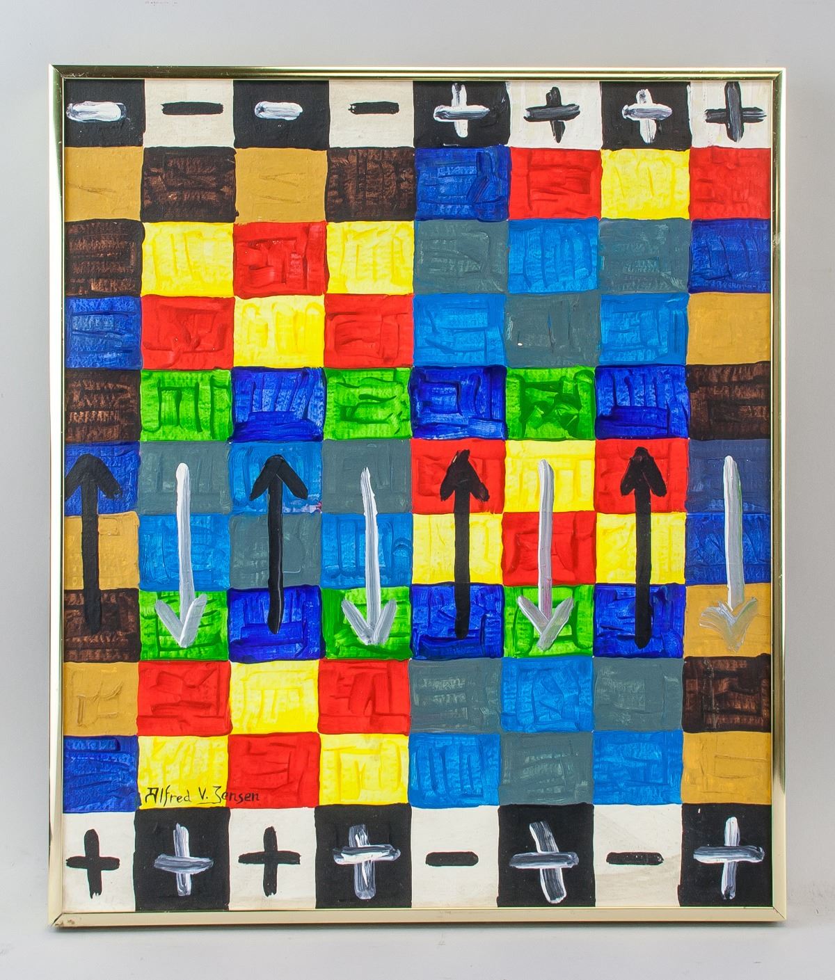 Oil on canvas, newly framed. Featuring an abstract composition. Signed Alfred Jensen (1903-1981, American) on the lower left corner. 45 x 38.5 cm (17.7 x 15.2 inches)