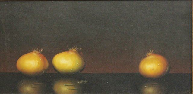 Oil on canvas. Framed. Signed lower right. Alfred Johnson (1940-2001). Approx. 11.5" H x 23" W without frame, 19.5" H x 31.5" W with frame. Good condition.