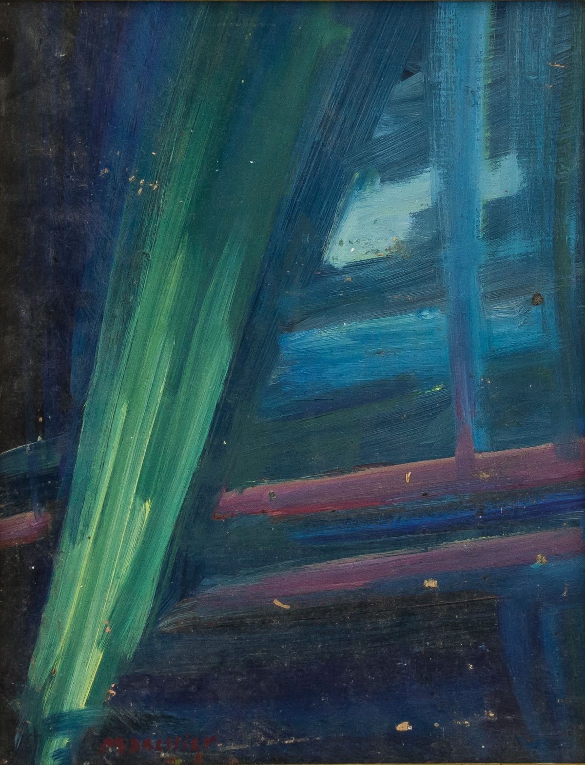 Oil on paper, framed. Featuring an abstract expressionist composition. Signed Manessier on the lower left corner. Attributed to Alfred Manessier (1911-1993, French). 34.5 x 27 cm (13.6 x 10.6 inches). Framed size: 40 x 32 cm (15.8 x 12.6 inches). Provenance: This lot carries limited provenance from a Southern Ontario estate