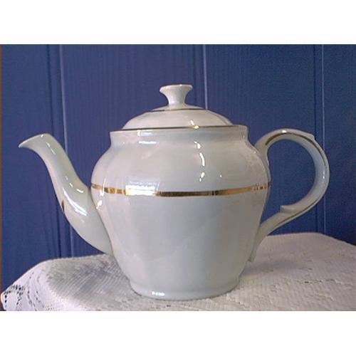 Teapot, Traditional Ironstone, Alfred Meakin Perfection Gold. The teapot measures 6.5 inches high and 10 inches wide handle to spout. The pot is in good condition except for some slight discoloration on the lid. I have attempted to show the discoloration in the picture however it is too light to show. You really have to examine it closely in order to detect it.